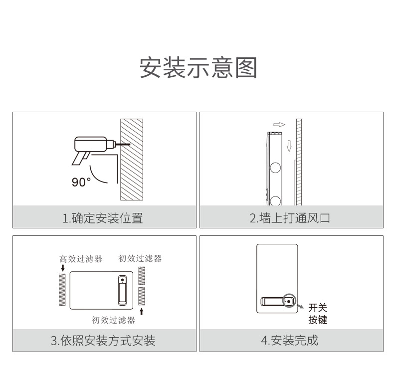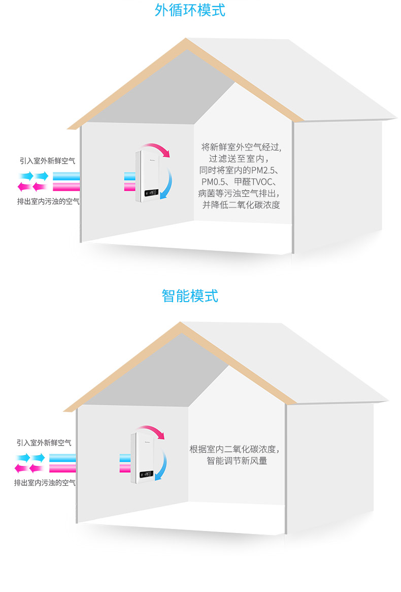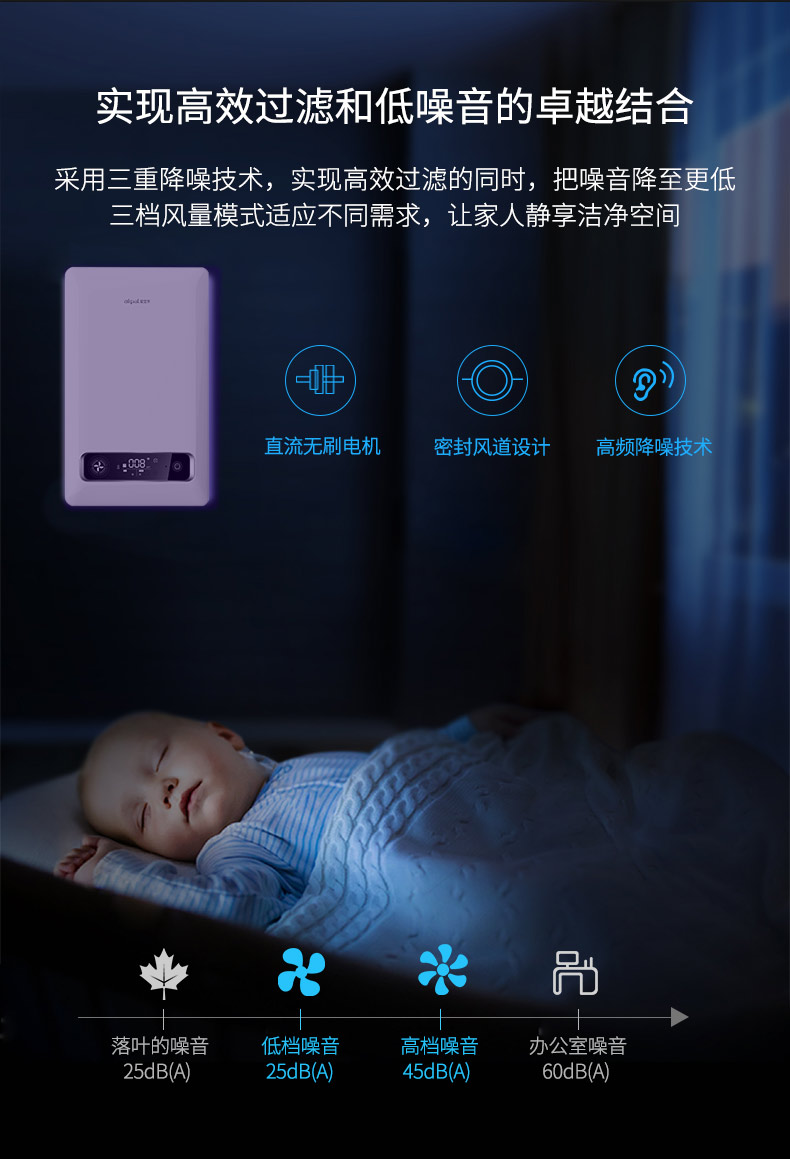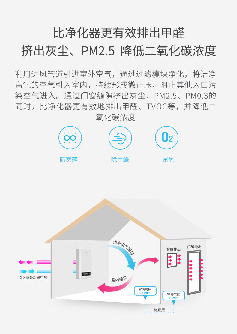 爱宝乐(airpal) 新风机家用壁挂式中央新风系统超薄 V-B110 白色