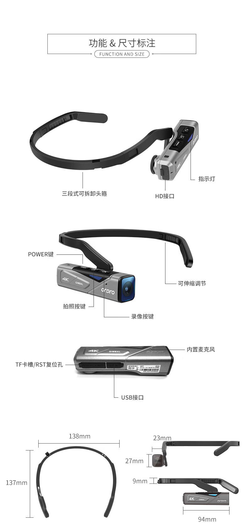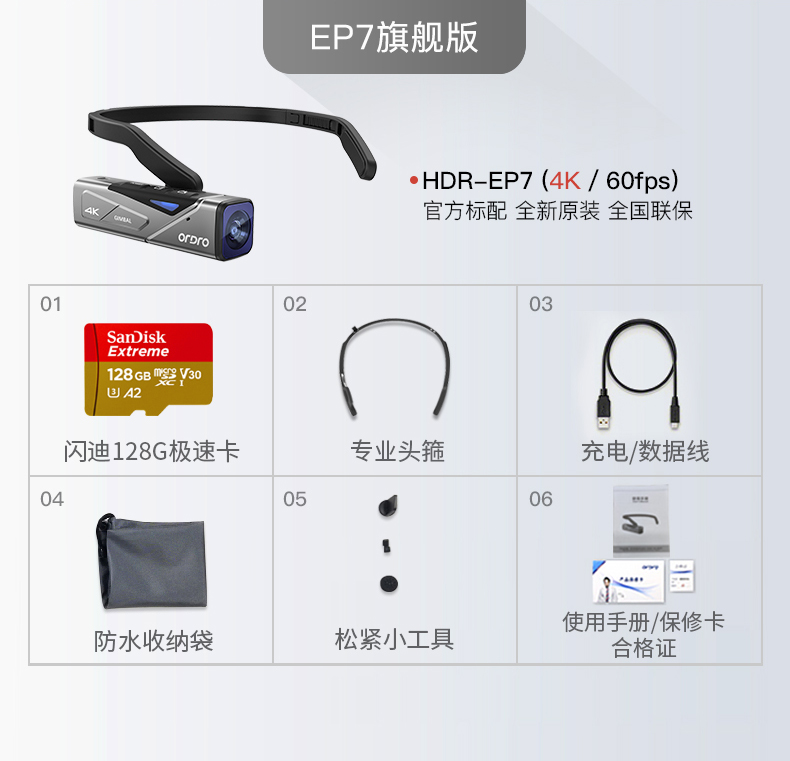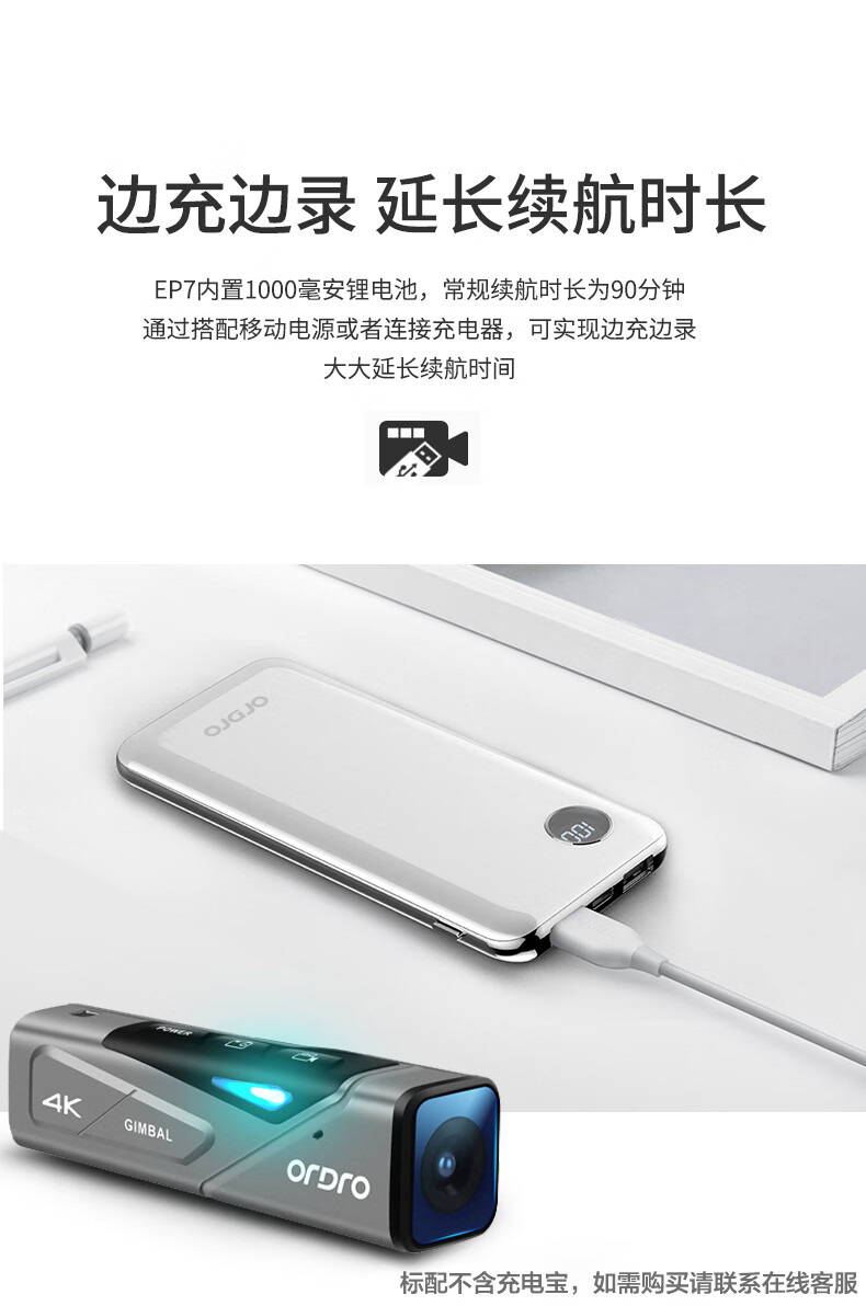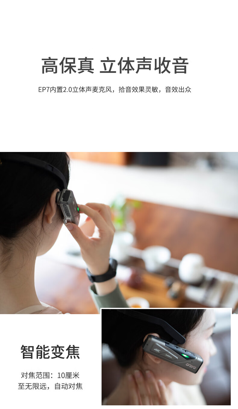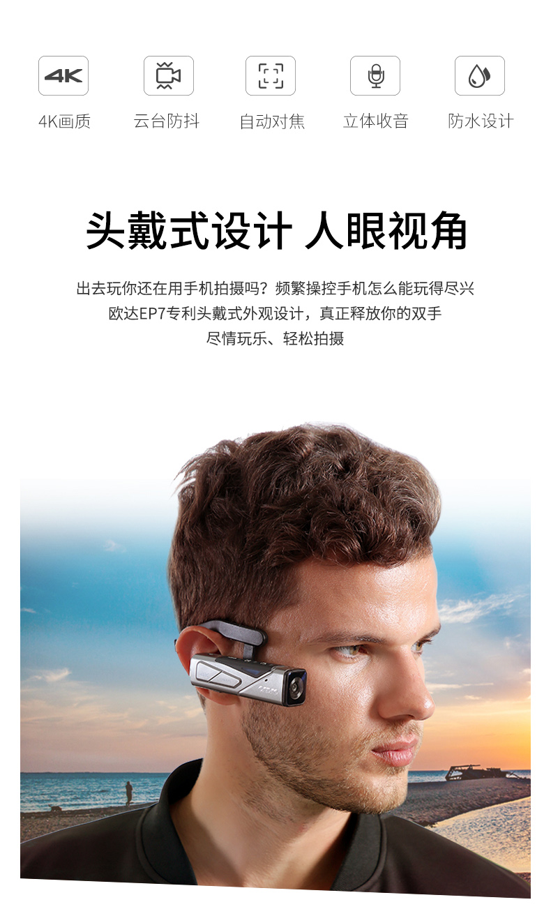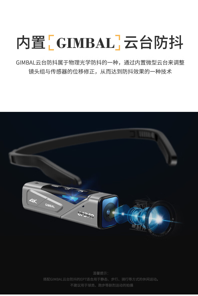 欧达(ORDRO)EP7头戴4K摄像机运动相机高清家用录像机云台增稳摄影机随身记录仪 抖音vlog短视频直播