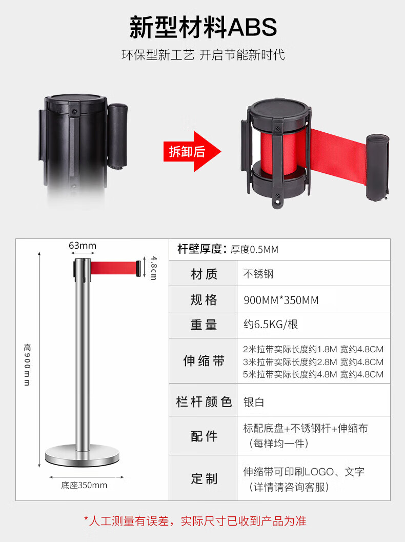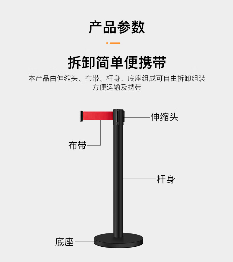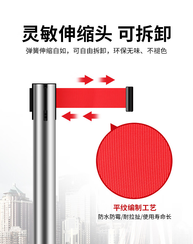 百舸 不锈钢5m(一对)隔离带伸缩带 一米线栏杆 警示警戒线 礼宾杆 分隔排队护栏围栏
