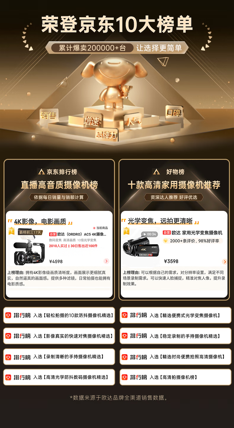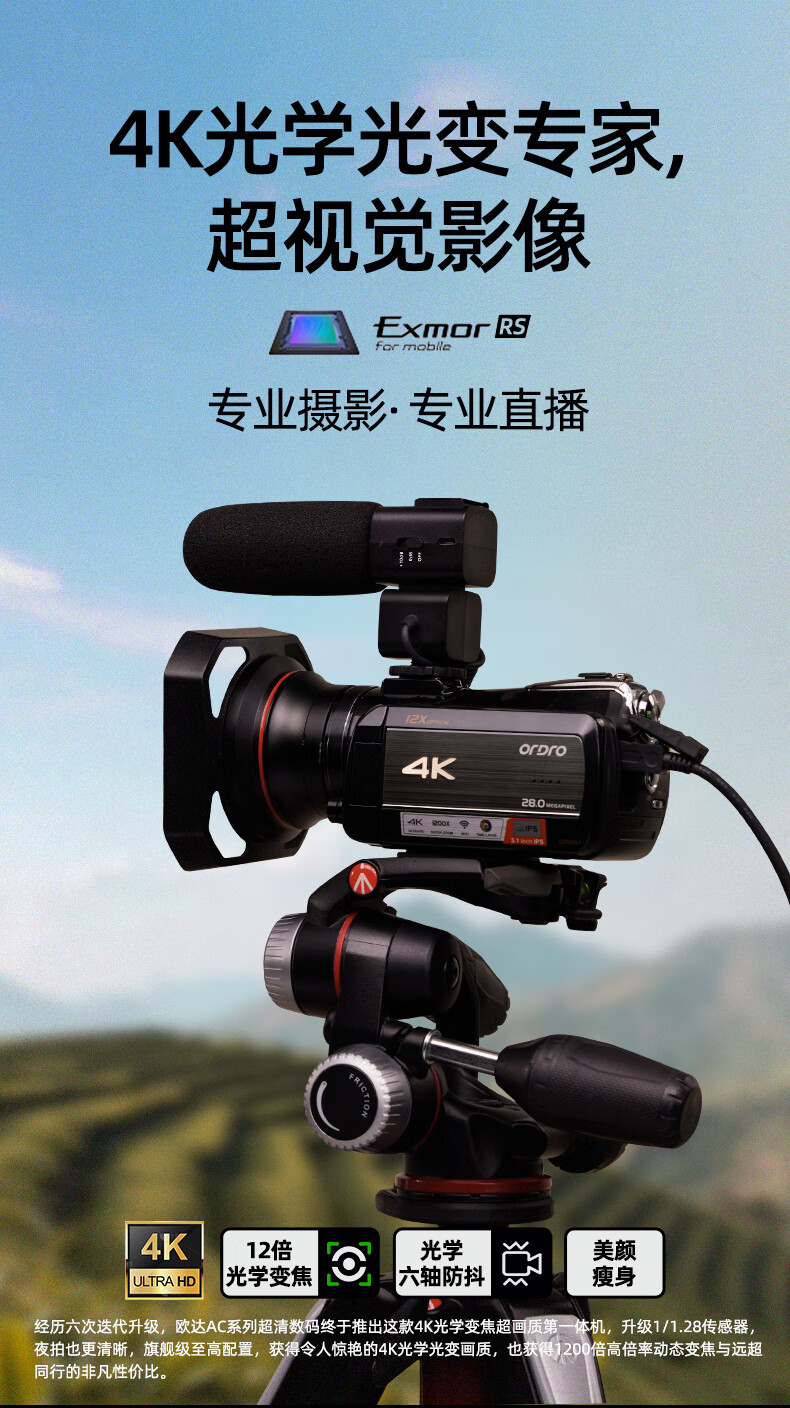 欧达(ORDRO)AC5【4K光学变焦】摄像机专业直播摄影机高清数码录像机DV抖音vlog短视频会议婚庆家用旅游