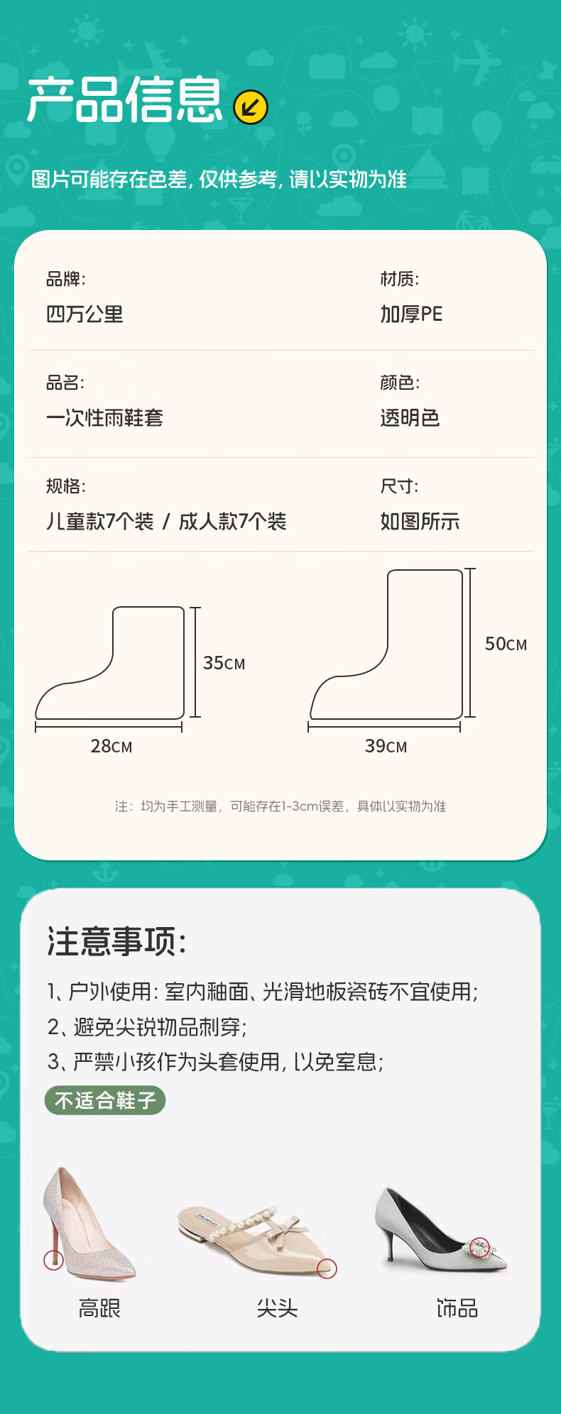 四万公里儿童雨鞋套防水雨天防雨便携卡片雨鞋套防滑加厚耐磨旅游户外鞋套