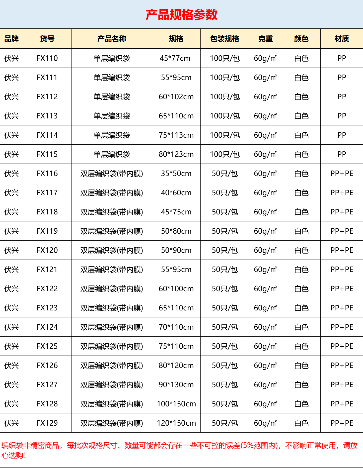 伏兴 FX123 白色带内膜编织袋 防水防潮蛇皮袋包装袋65*110cm 50只装 1包