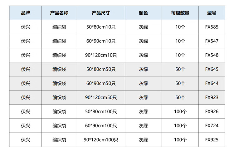 伏兴 FX585 编织袋蛇皮袋发货打包袋包装袋防汛袋 灰绿 50*80cm10只装 1包