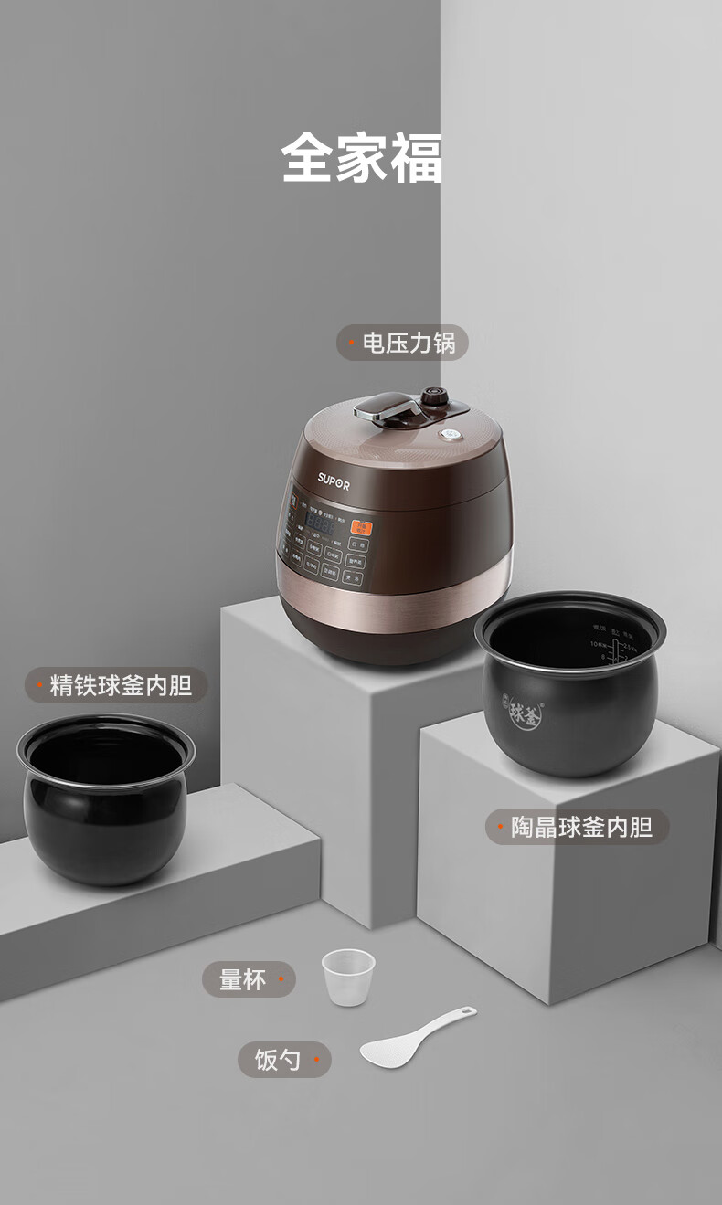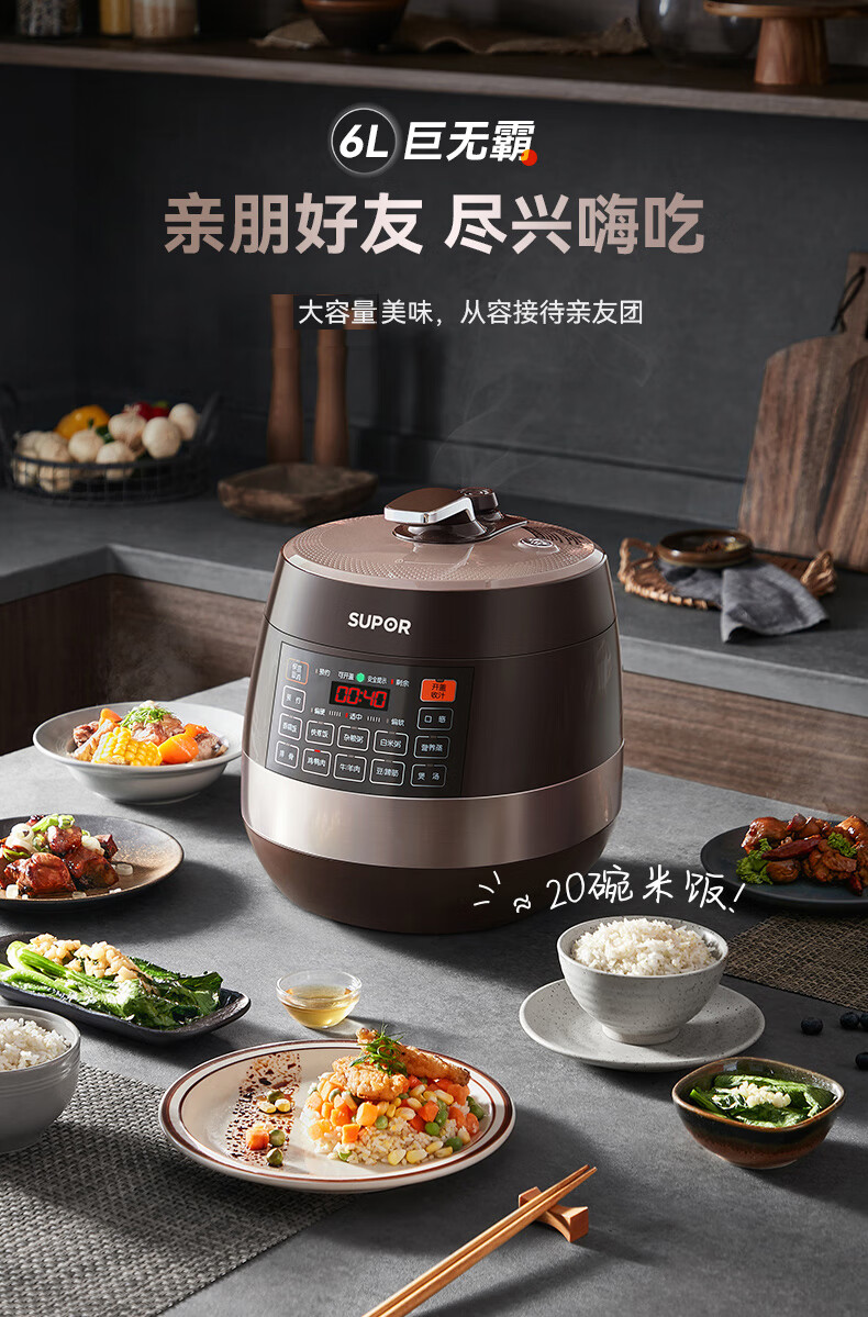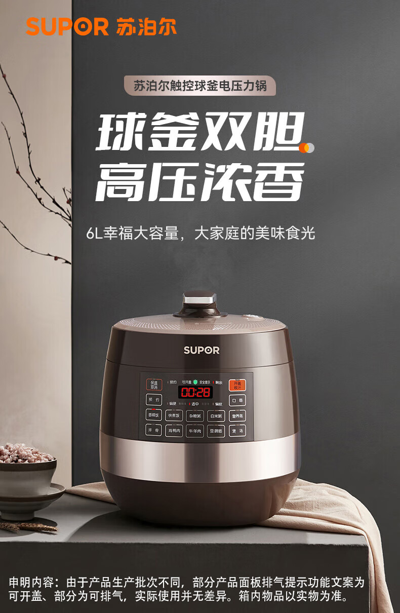 苏泊尔(SUPOR)【国家补贴】全自动智能预约电压力锅 6L大容量 触控家用双球釜内胆60YC8001Q电饭煲高压锅4-8人