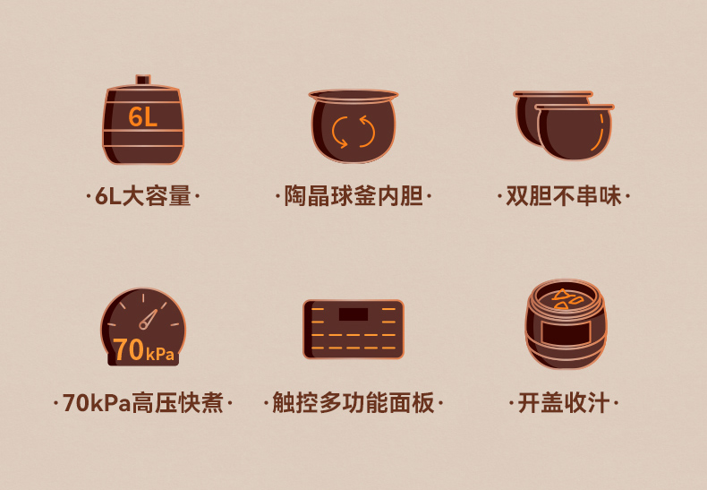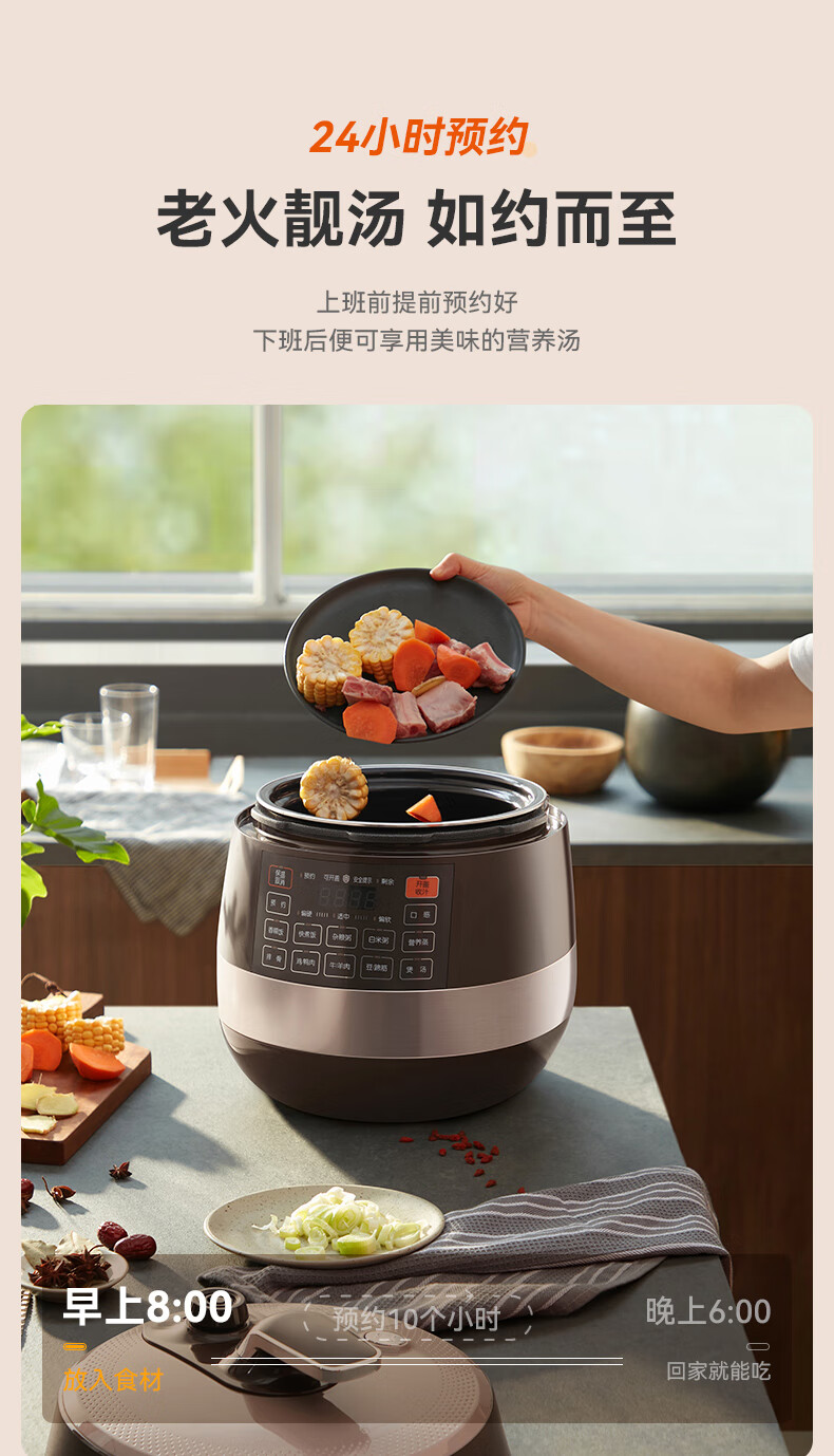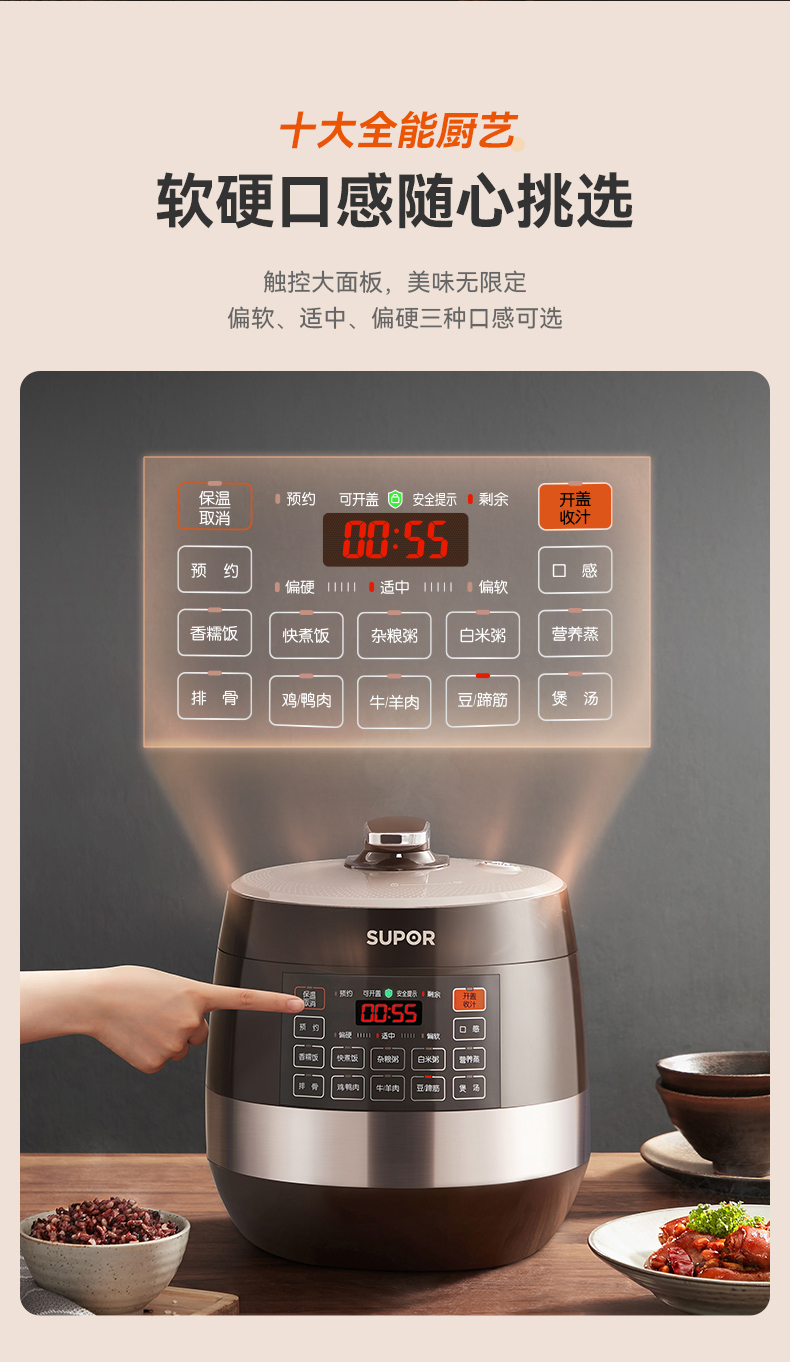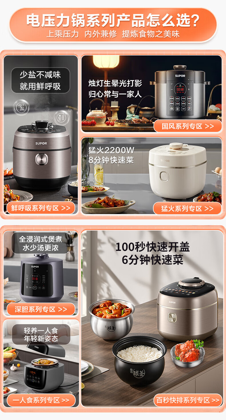 苏泊尔(SUPOR)【国家补贴】全自动智能预约电压力锅 6L大容量 触控家用双球釜内胆60YC8001Q电饭煲高压锅4-8人