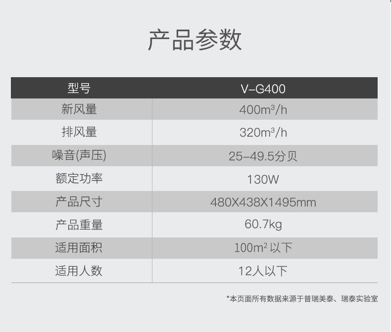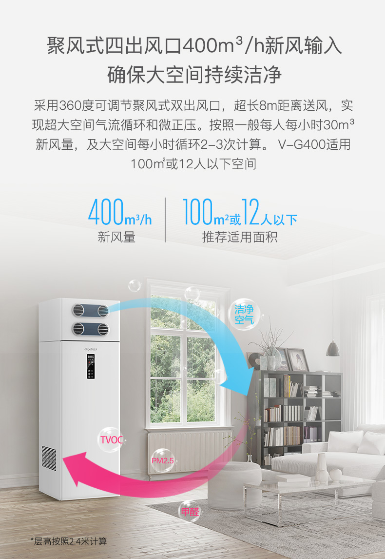 爱宝乐(airpal) 新风机柜式新风机中央新风系统家用 柜式 V-G400 白色