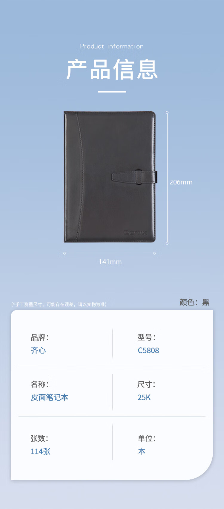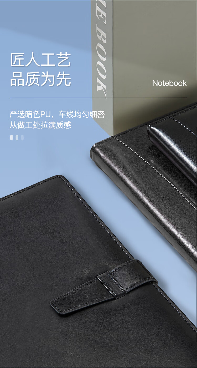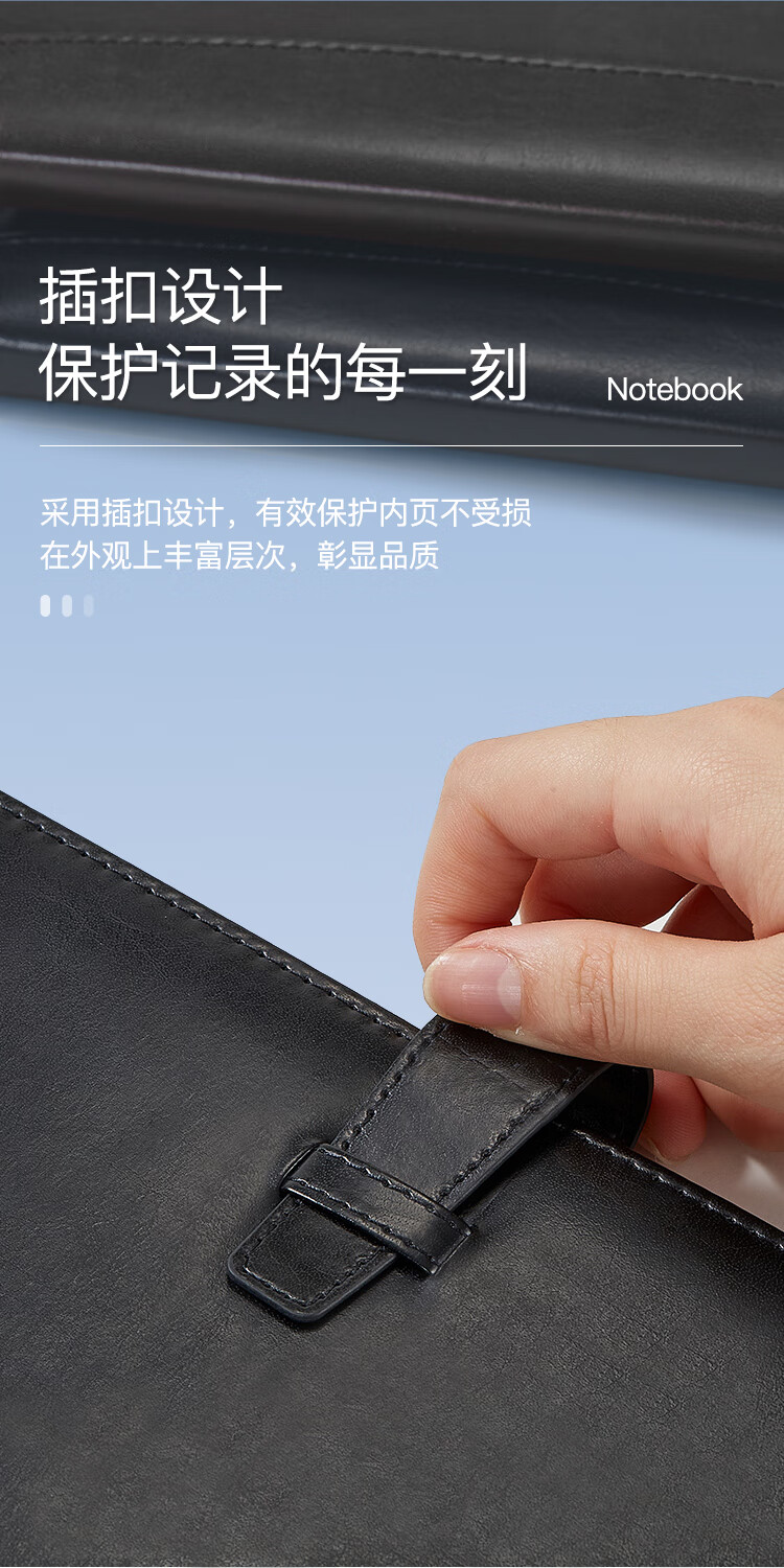 齐心(Comix)插扣式皮面笔记本子/记事本/日记本/会议记录本定制 25K/114张 黑色 C5808