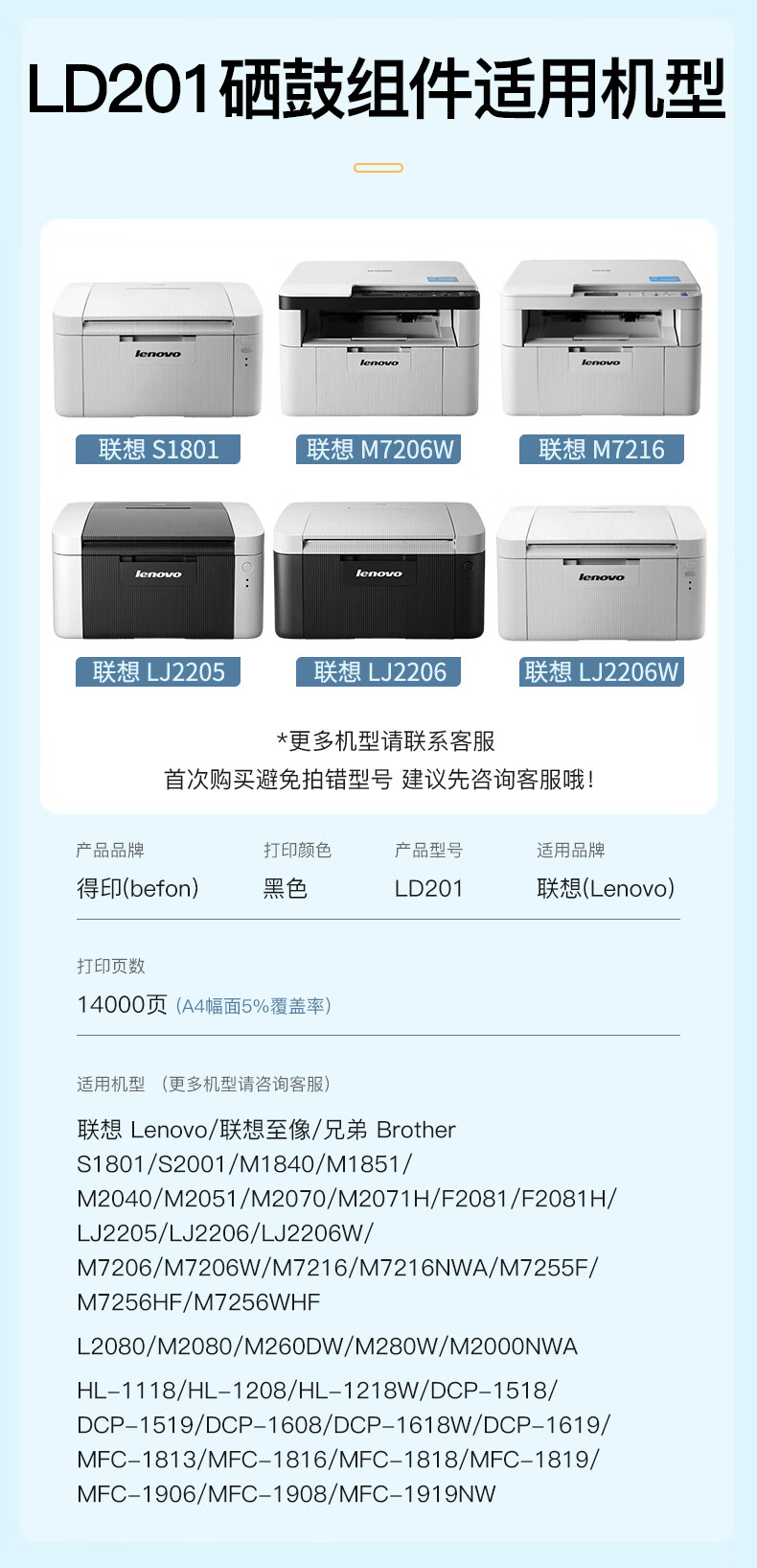 得印LD201硒鼓架适用联想M7206硒鼓M7206W墨粉LJ2206W S1801 M1851 F2081 LJ2205 M7255F M7256WHF打印机墨盒