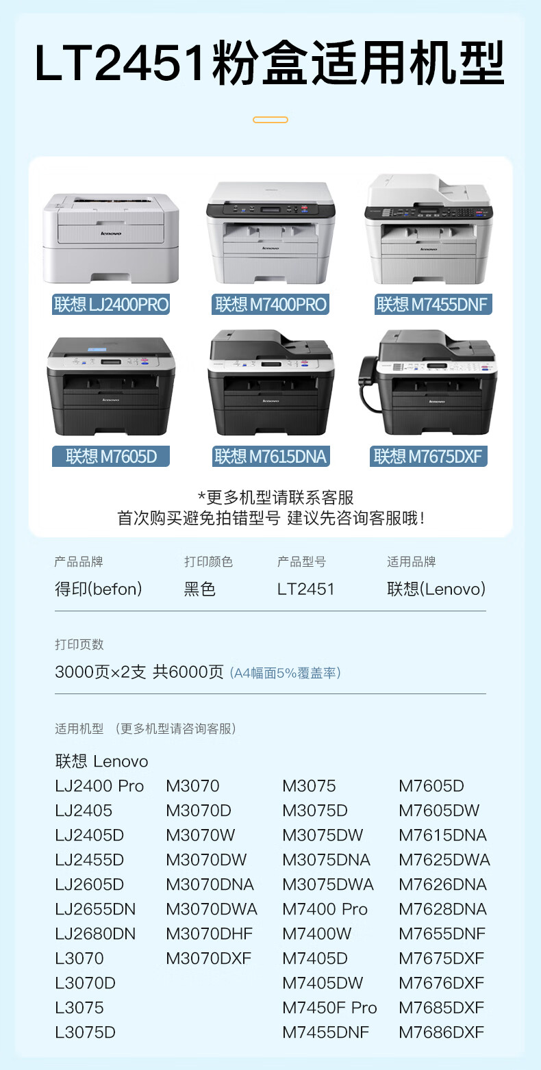 得印适用联想m7400pro粉盒 m7605d硒鼓 M7615dna LJ2655 LJ2605 M7675 M7405d M7655 LT2451 M7450F打印机墨盒