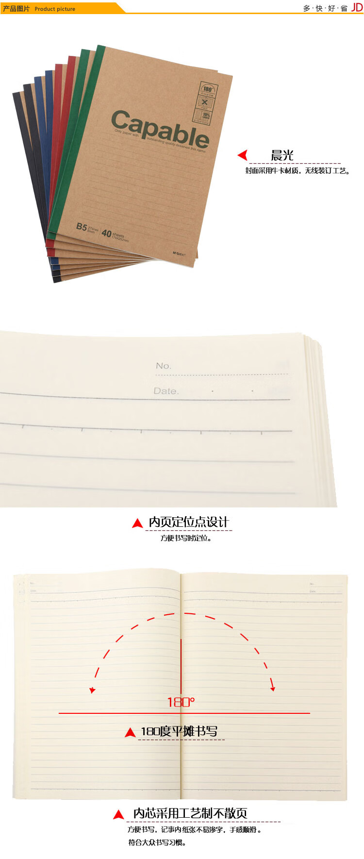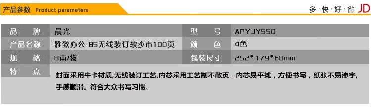 晨光(M&G) B5无线装订本100页软抄记事本 会议记录本无线装订日记本办公学习用笔记本 APYJY550 8本装