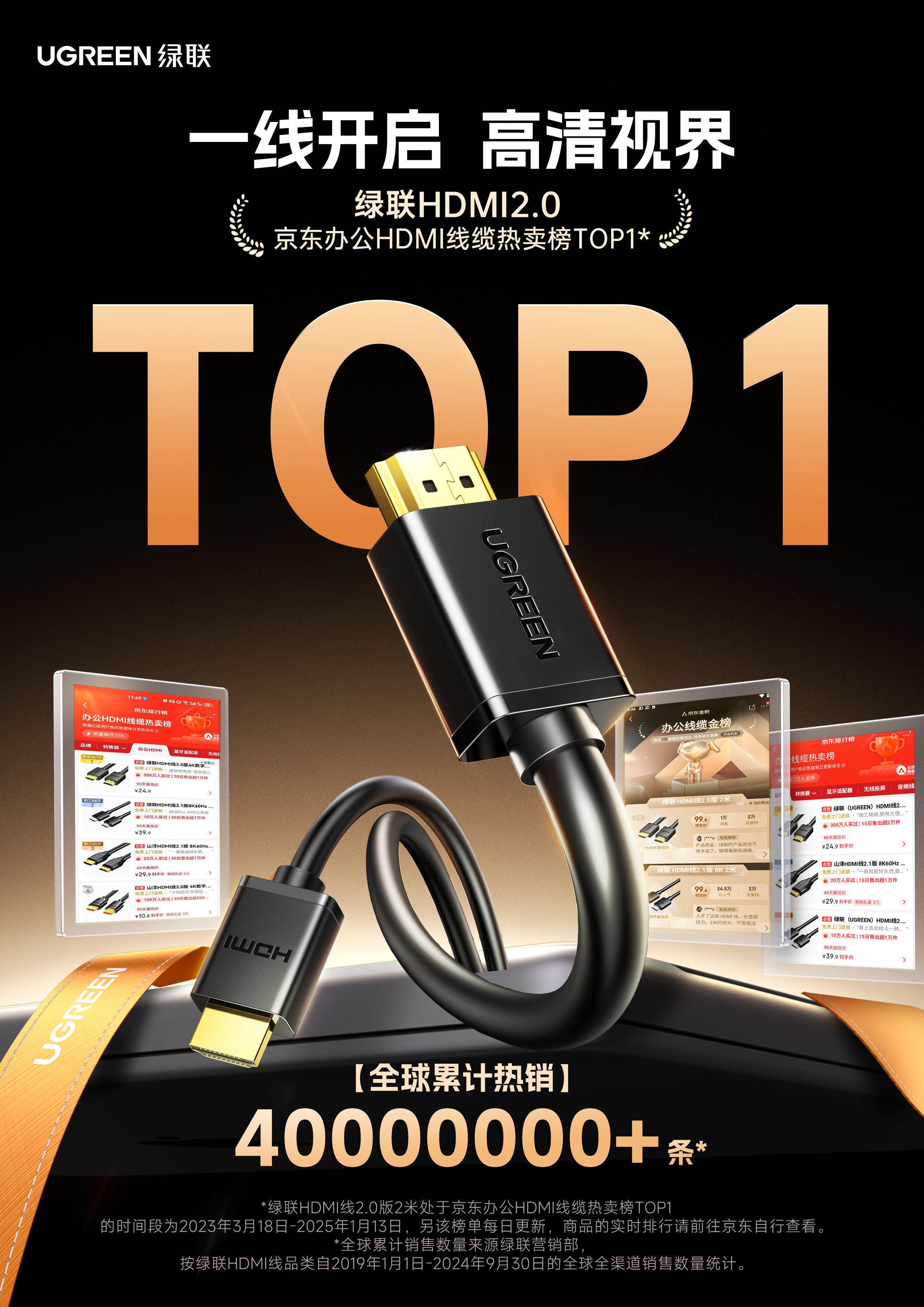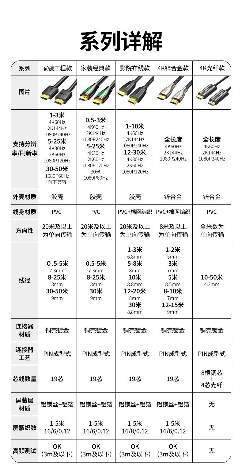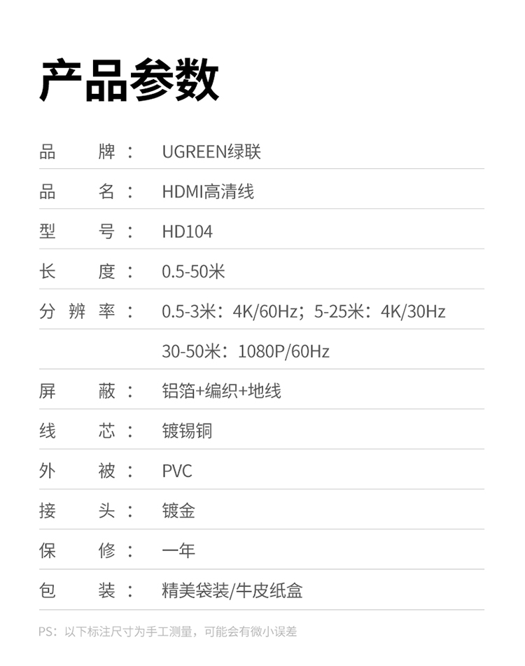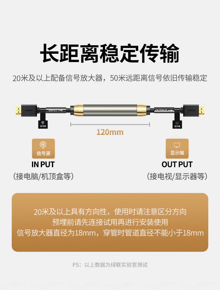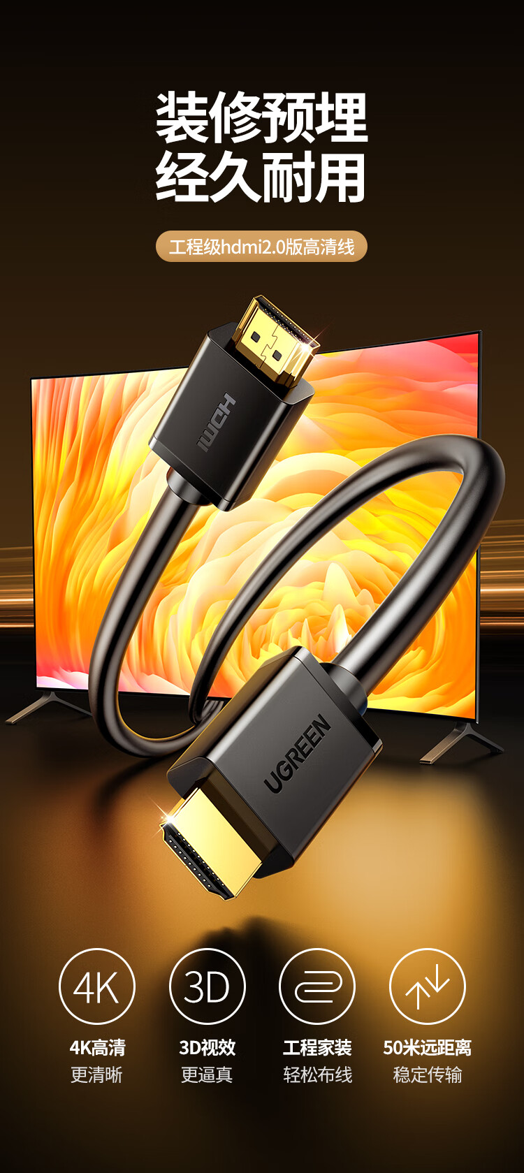绿联 HDMI线数字高清线 HDMI工程线 3D视频线 笔记本电脑机顶盒连接电视显示器投影仪 35米80729
