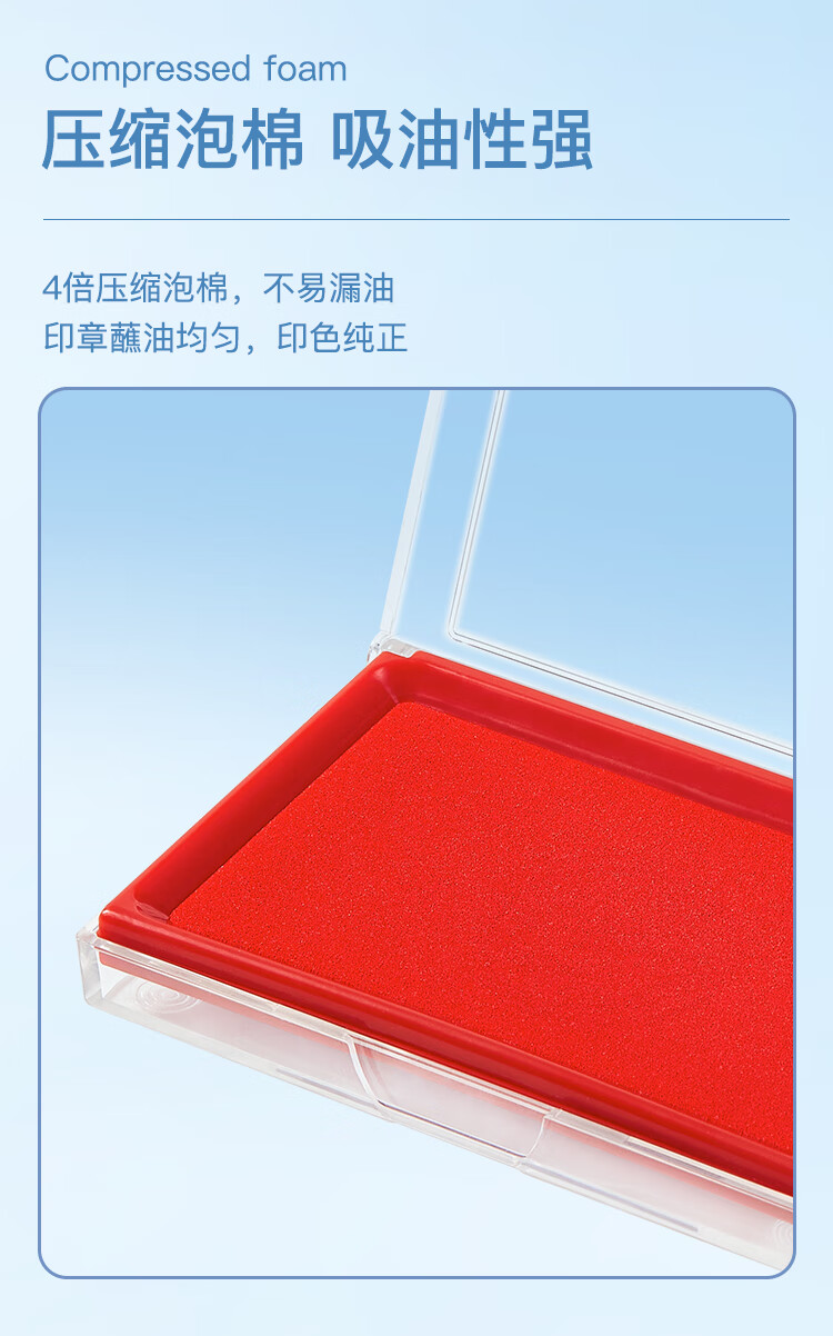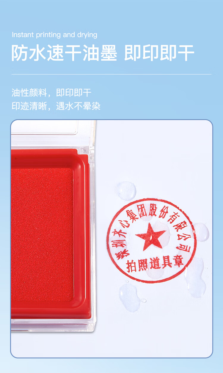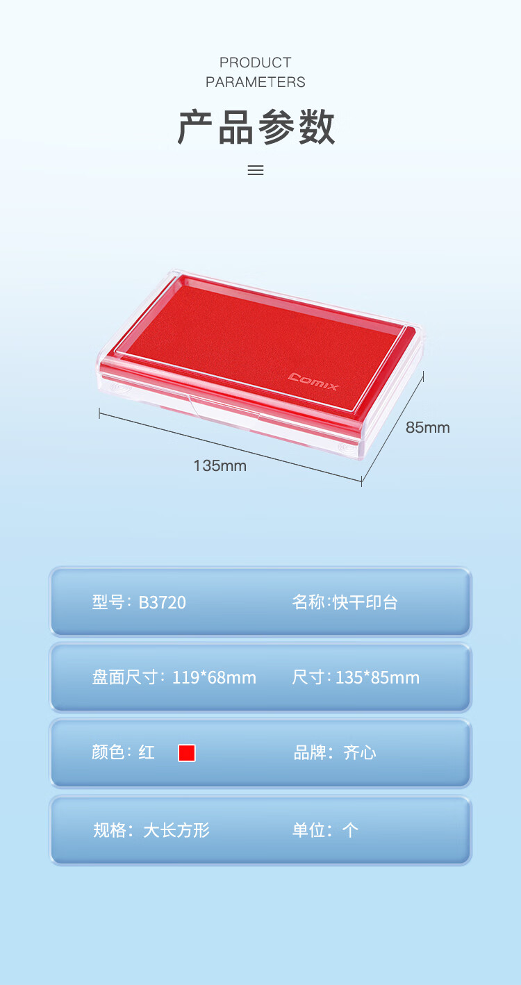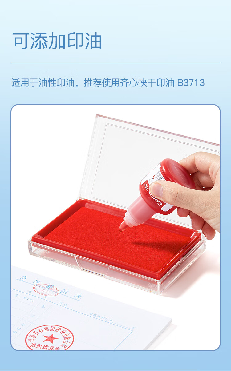齐心(Comix)135*85mm方形防水快干印台印泥 办公用品 红色B3720