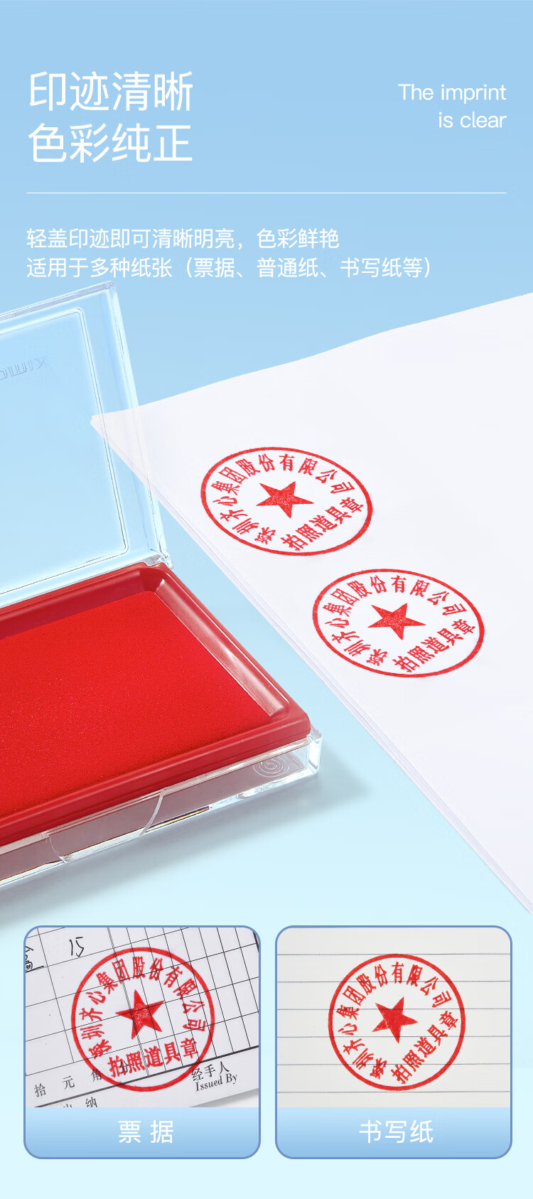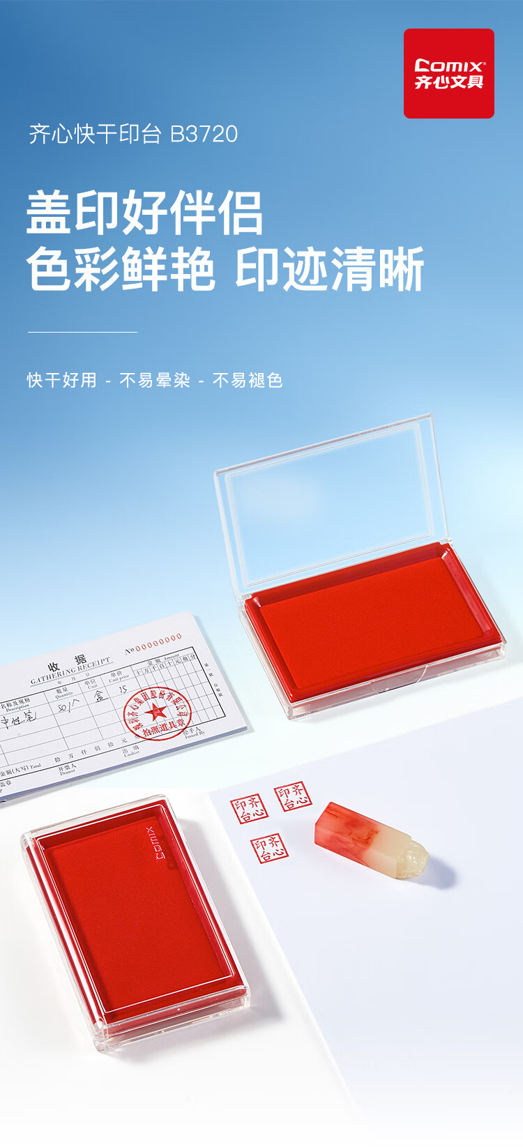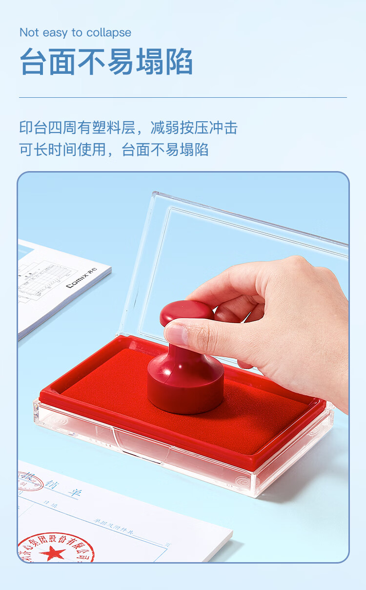 齐心(Comix)135*85mm方形防水快干印台印泥 办公用品 红色B3720