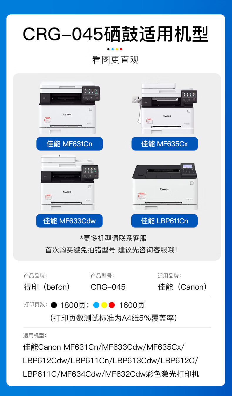 得印 CRG-045硒鼓青色 适用佳能MF633Cdw MF631Cn MF635Cx LBP611Cn LBP613Cdw cf400a粉盒墨盒