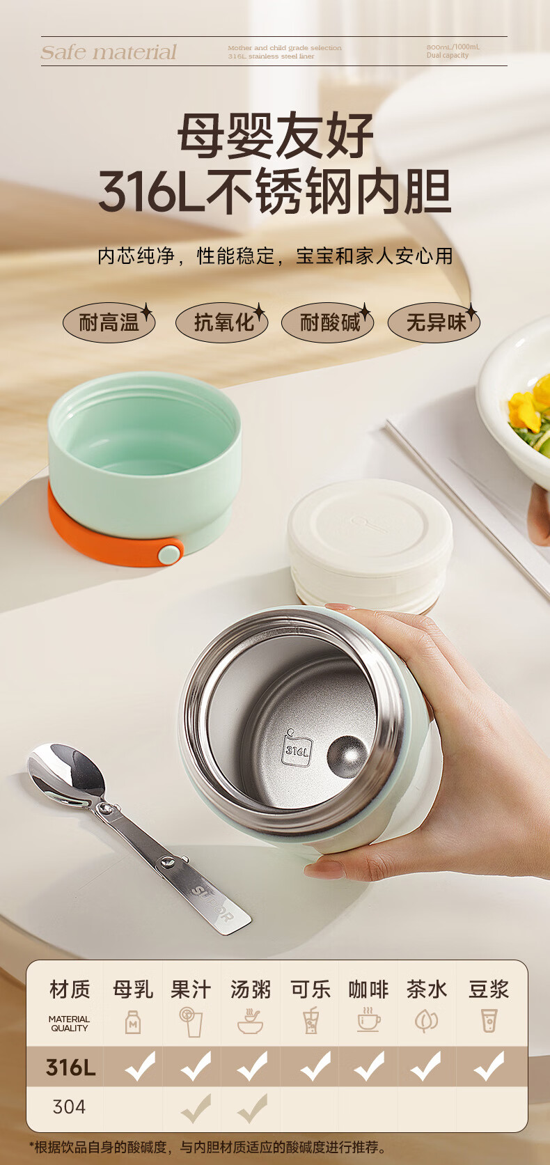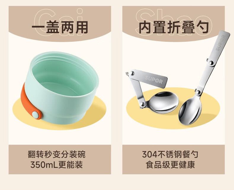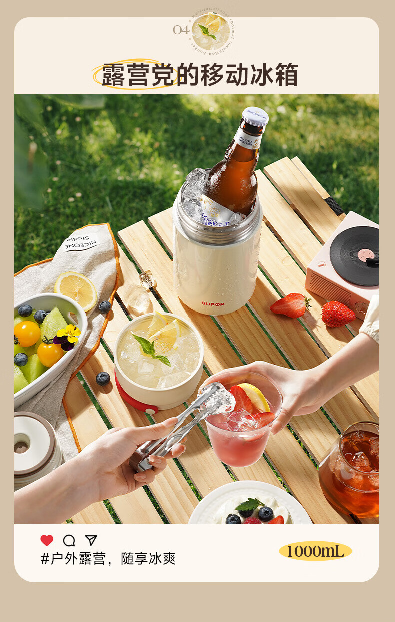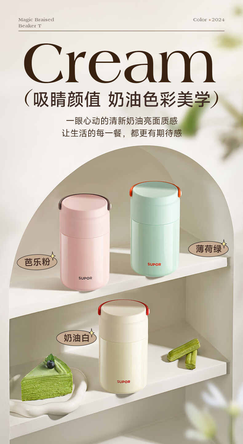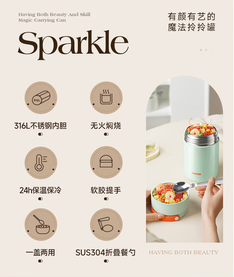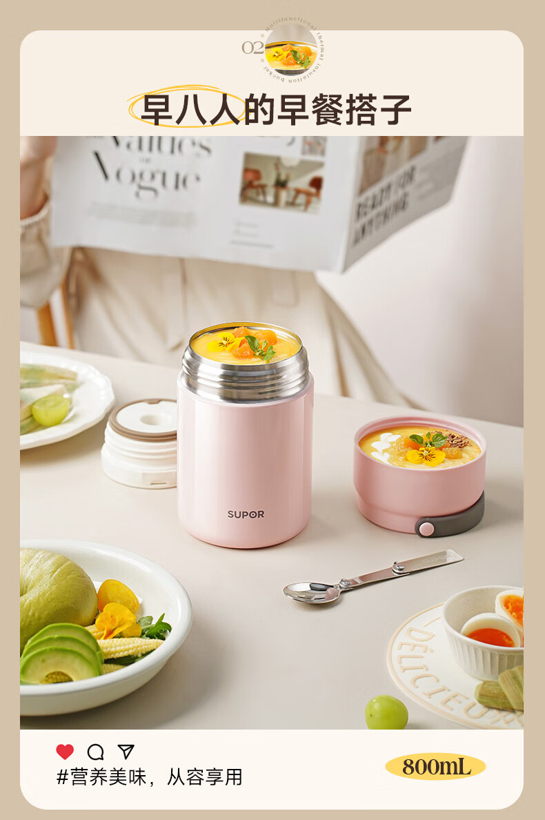 苏泊尔(SUPOR) 焖烧杯316L不锈钢焖烧壶保温饭盒带饭焖粥真空闷烧壶罐1000ml白