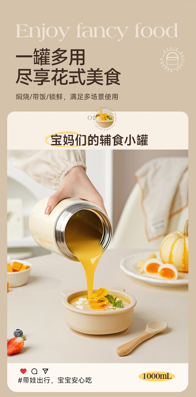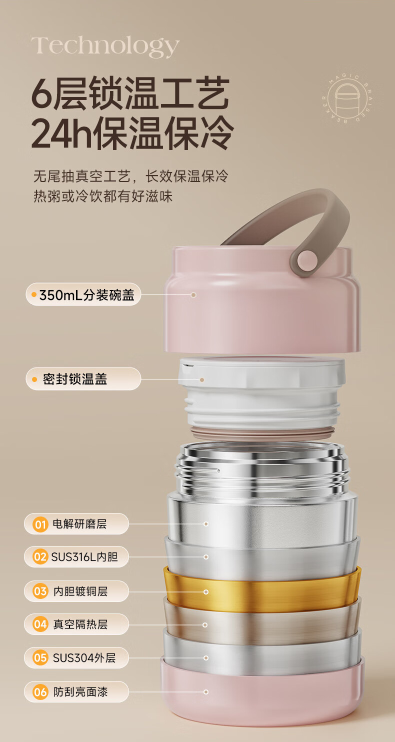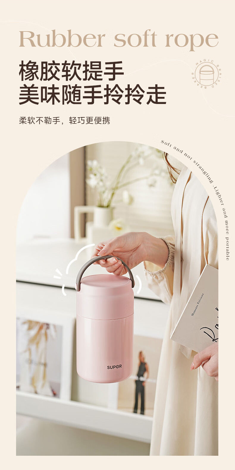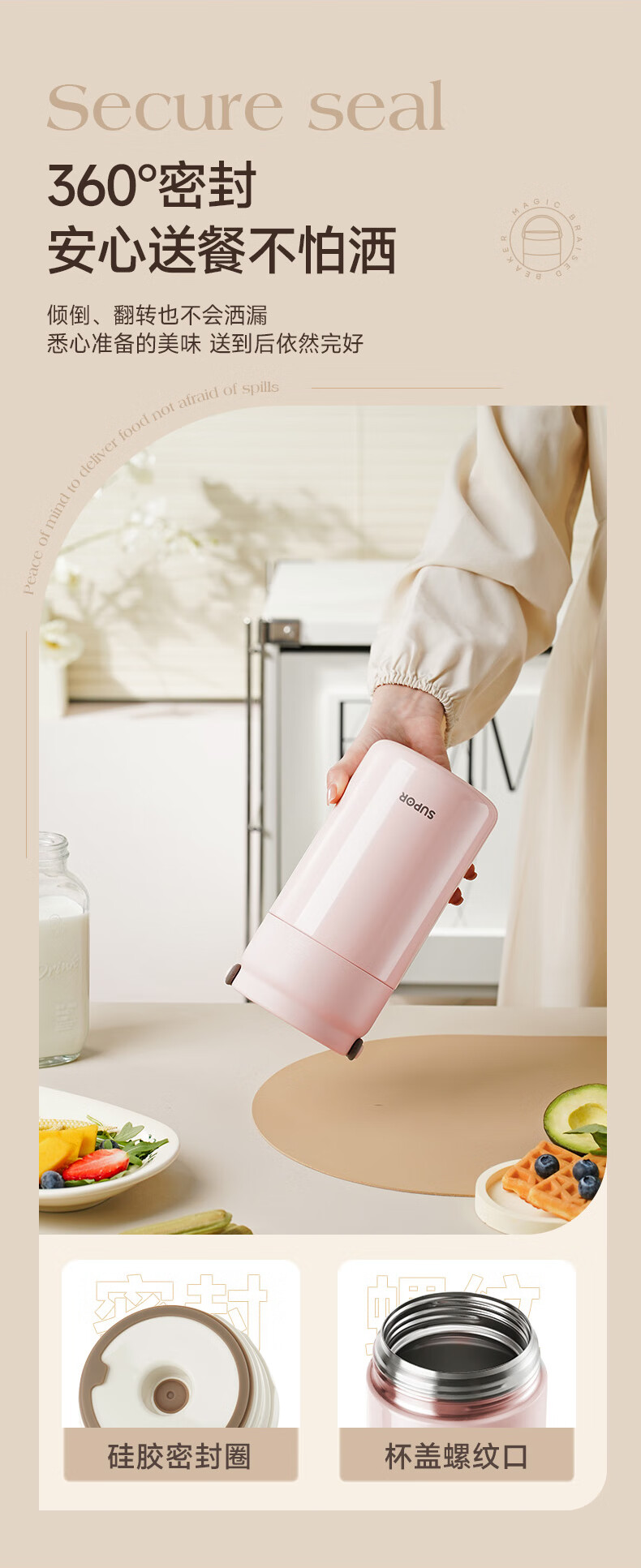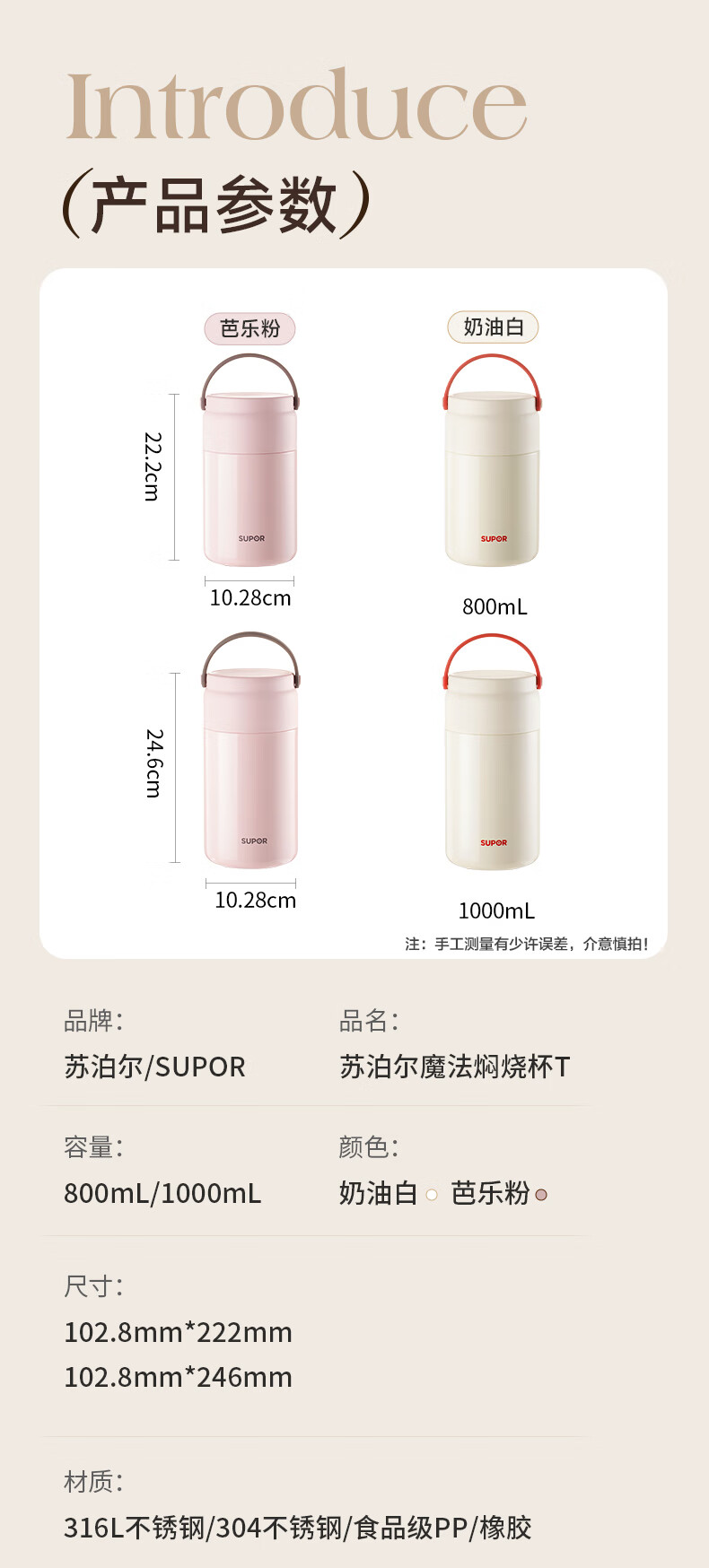苏泊尔(SUPOR) 焖烧杯316L不锈钢焖烧壶保温饭盒带饭焖粥真空闷烧壶罐1000ml白