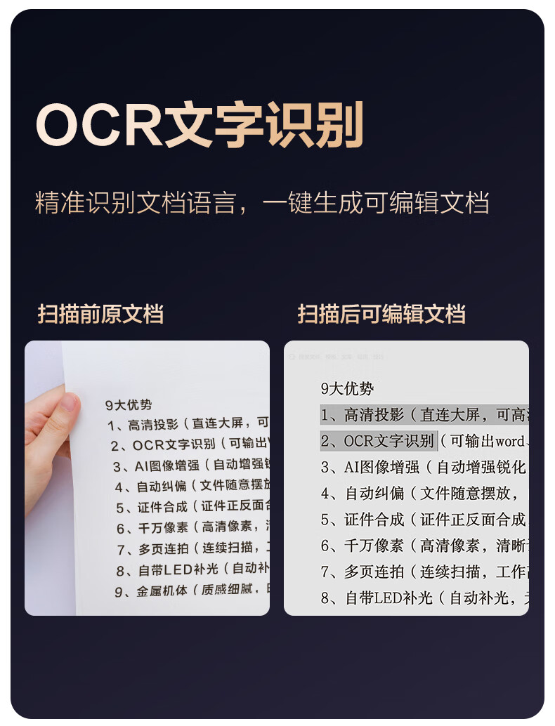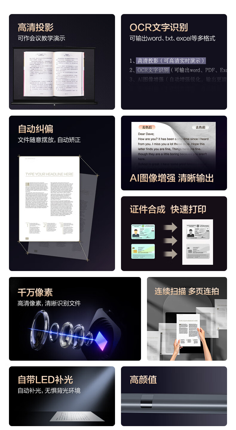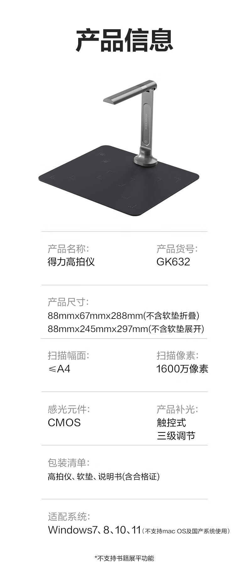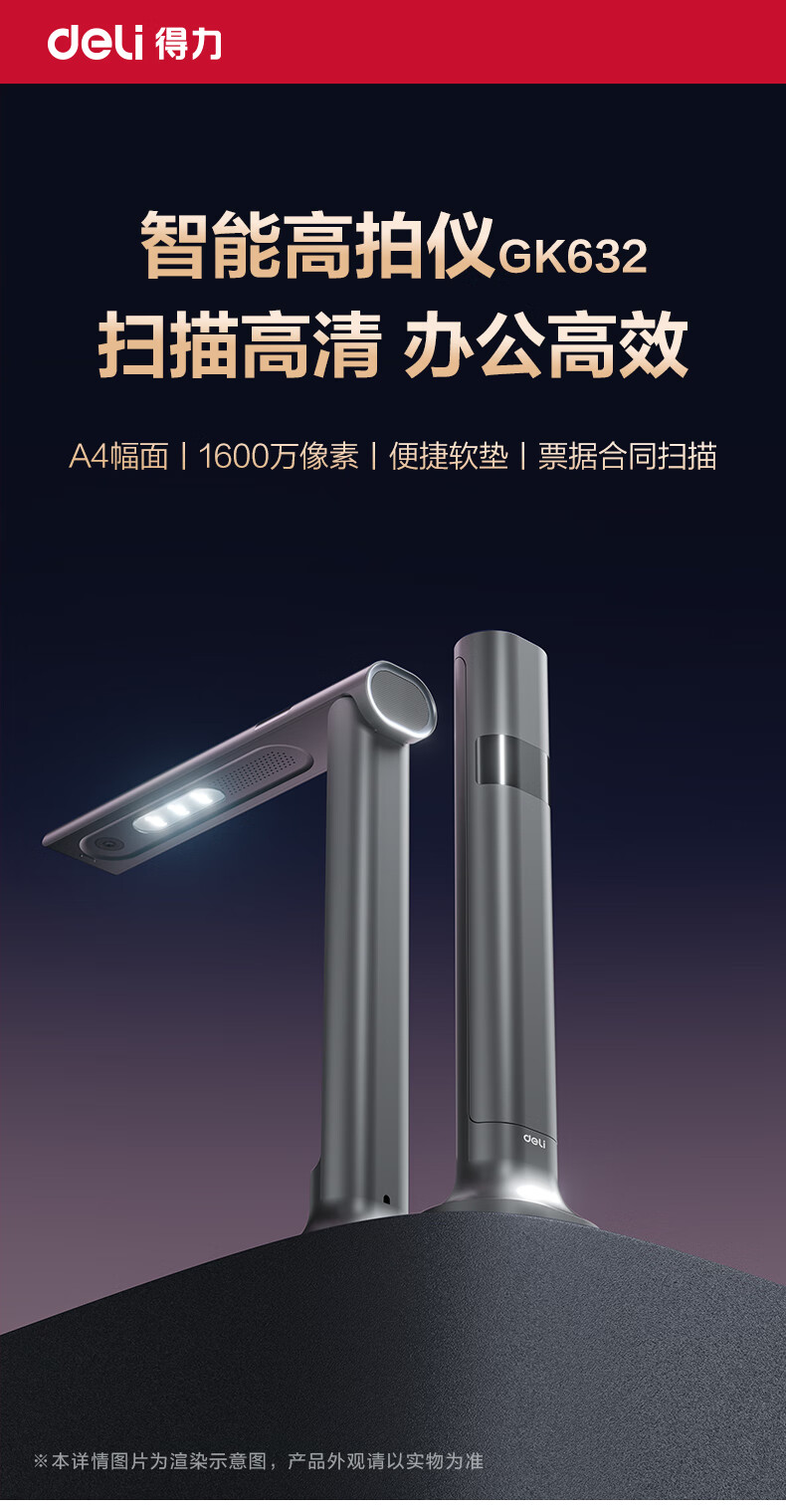 得力扫描仪 1600万像素高拍仪 照片扫描仪 扫描仪自动连续 高速办公用 文件扫描 A4软底 GK632