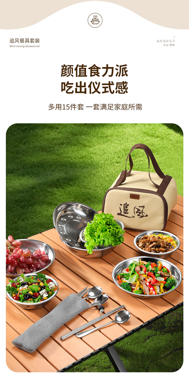 华典世通(HDST) ZF-25004 15件套 追风户外野营餐具套装 不锈钢本色(单位:套)