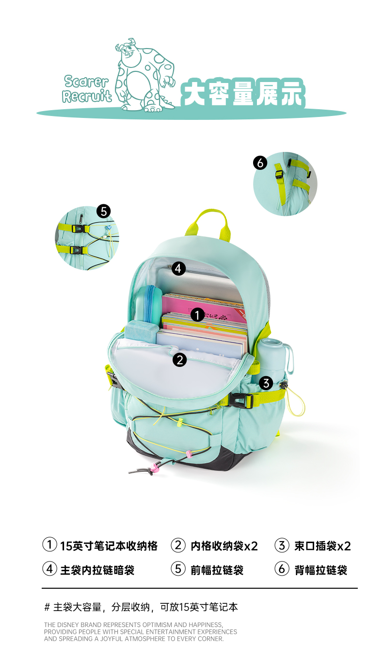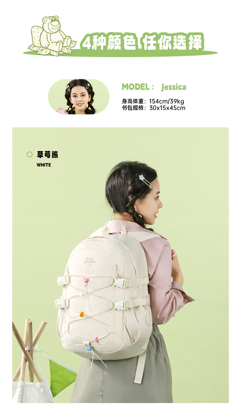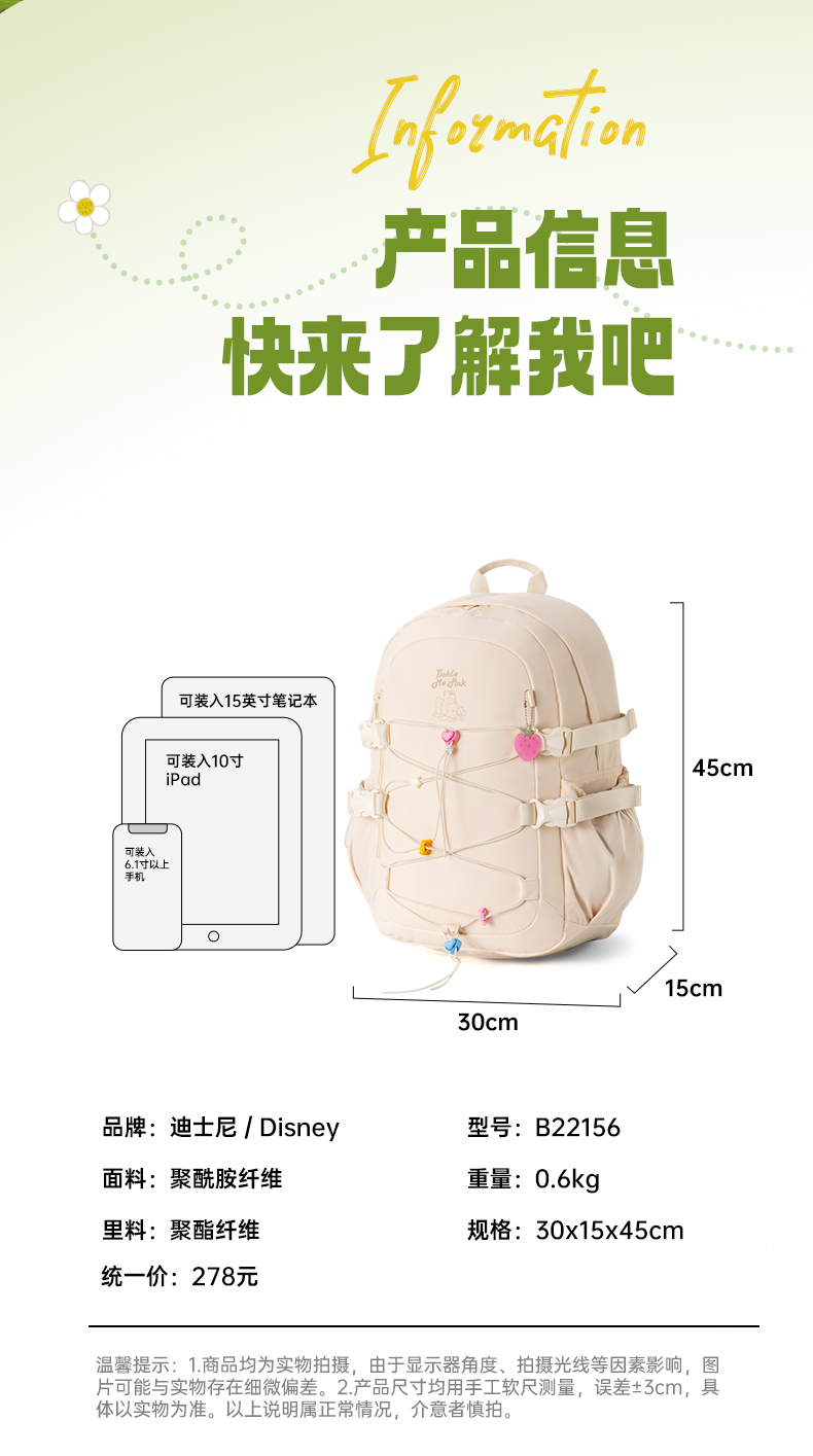 迪士尼(Disney) B22156-T4 30*15*45cm 3-6年级女生书包 米白色(单位:个)