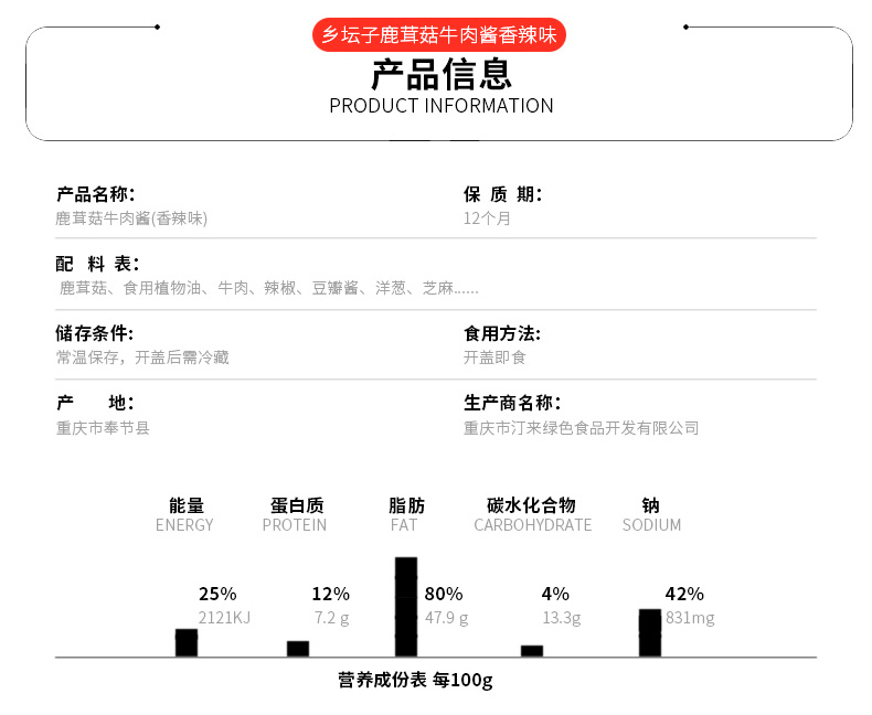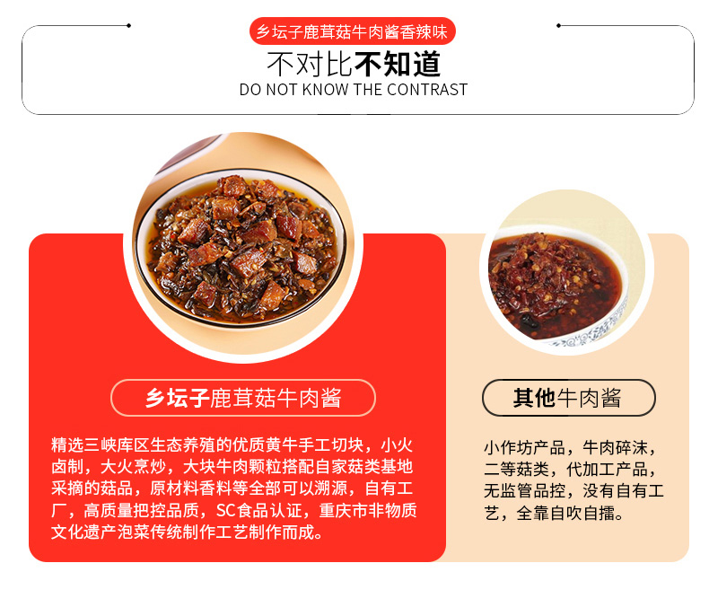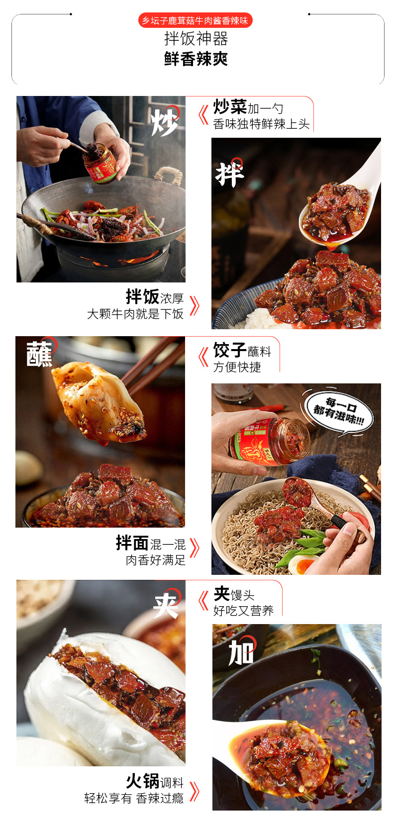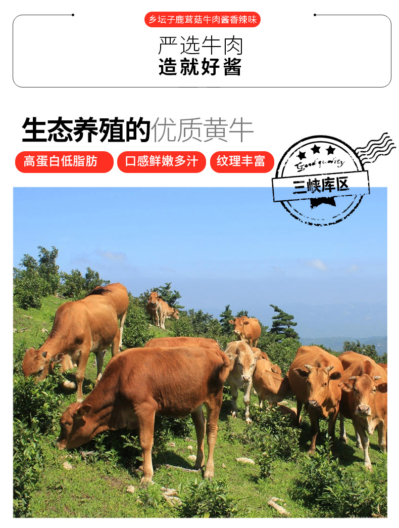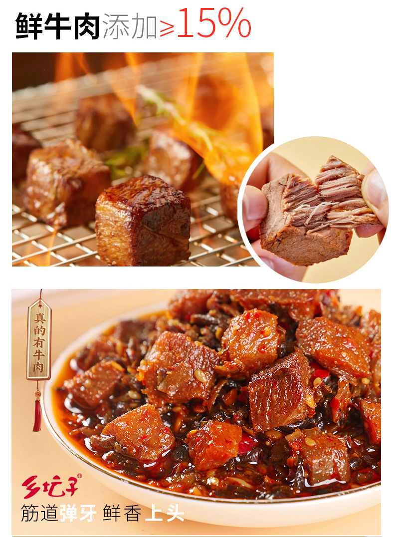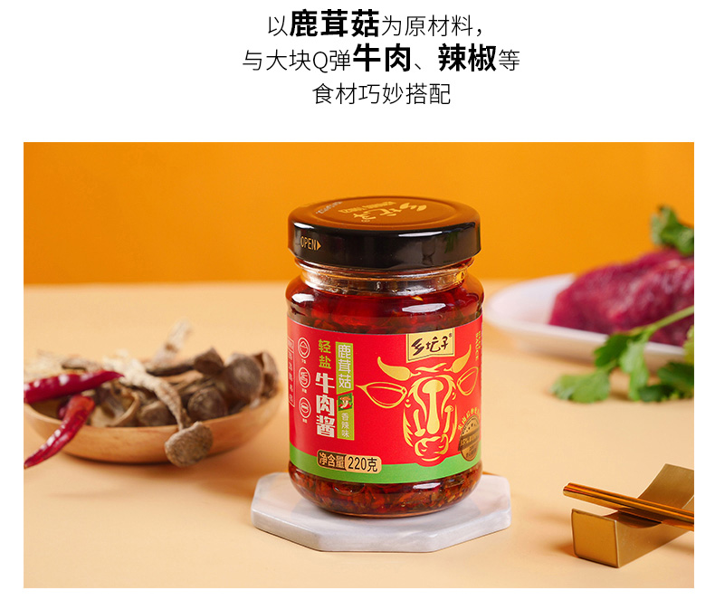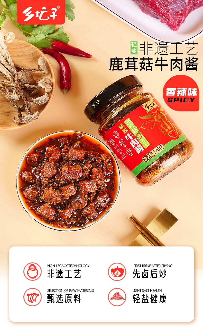 乡坛子 鹿茸菇牛肉酱香辣味 220g*2 大块牛肉轻盐健康 混色(单位:组)