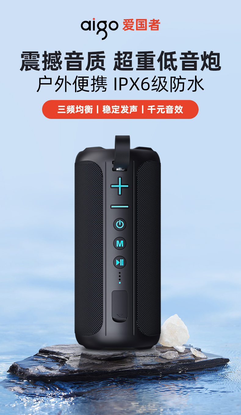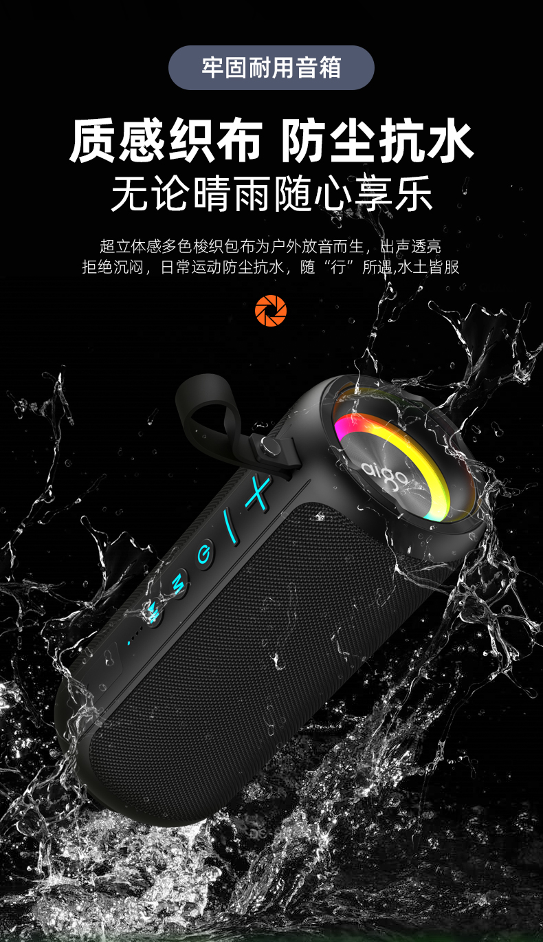 爱国者(aigo) T39升级版 IPX6防水 蓝牙音箱 黑色(单位:个)