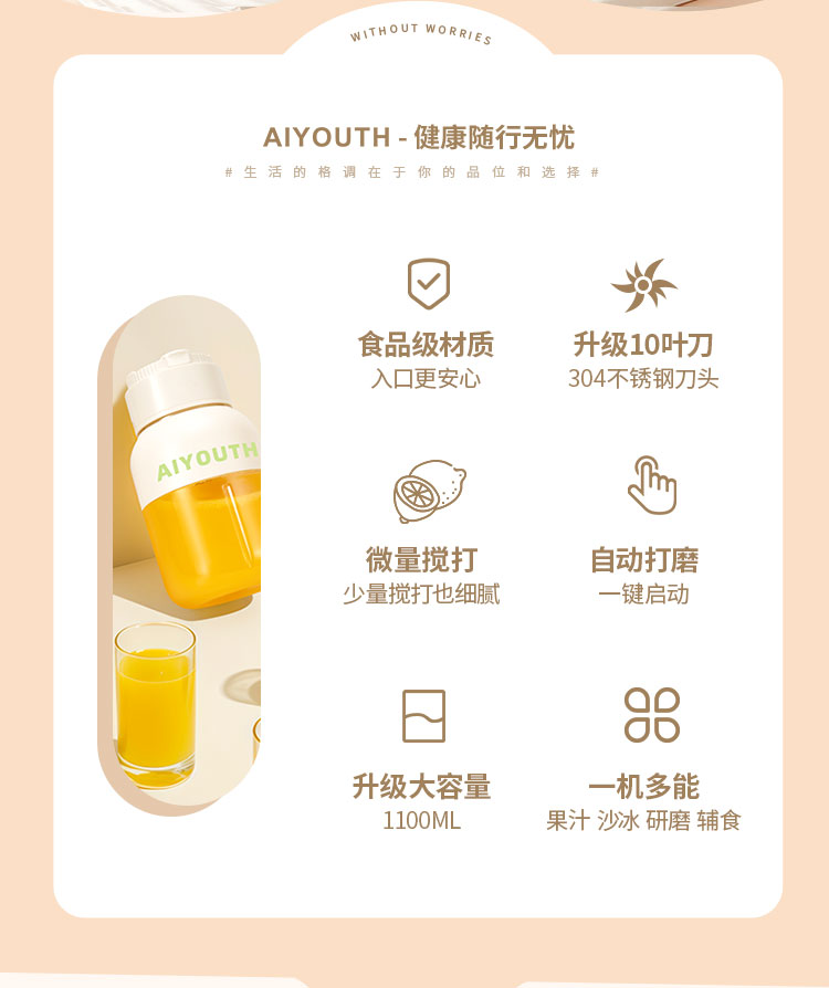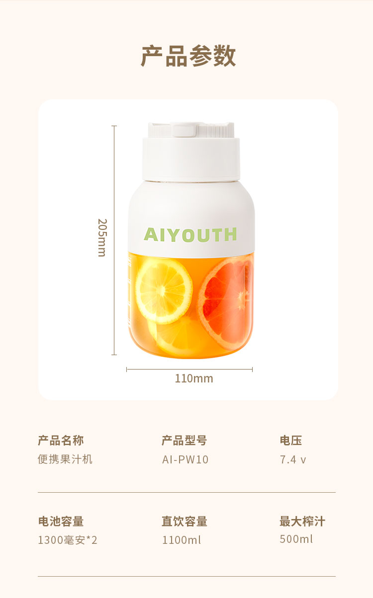 艾青春(AIYOUTH) AI-PW10 1100ML 果汁机 米白色(单位:台)