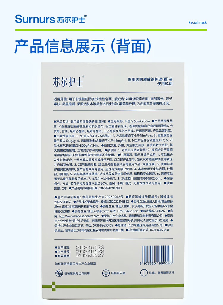 苏尔护士(Surnurs) 透明质酸钠 5片/2盒 医用护理膜液 白色(单位:盒)