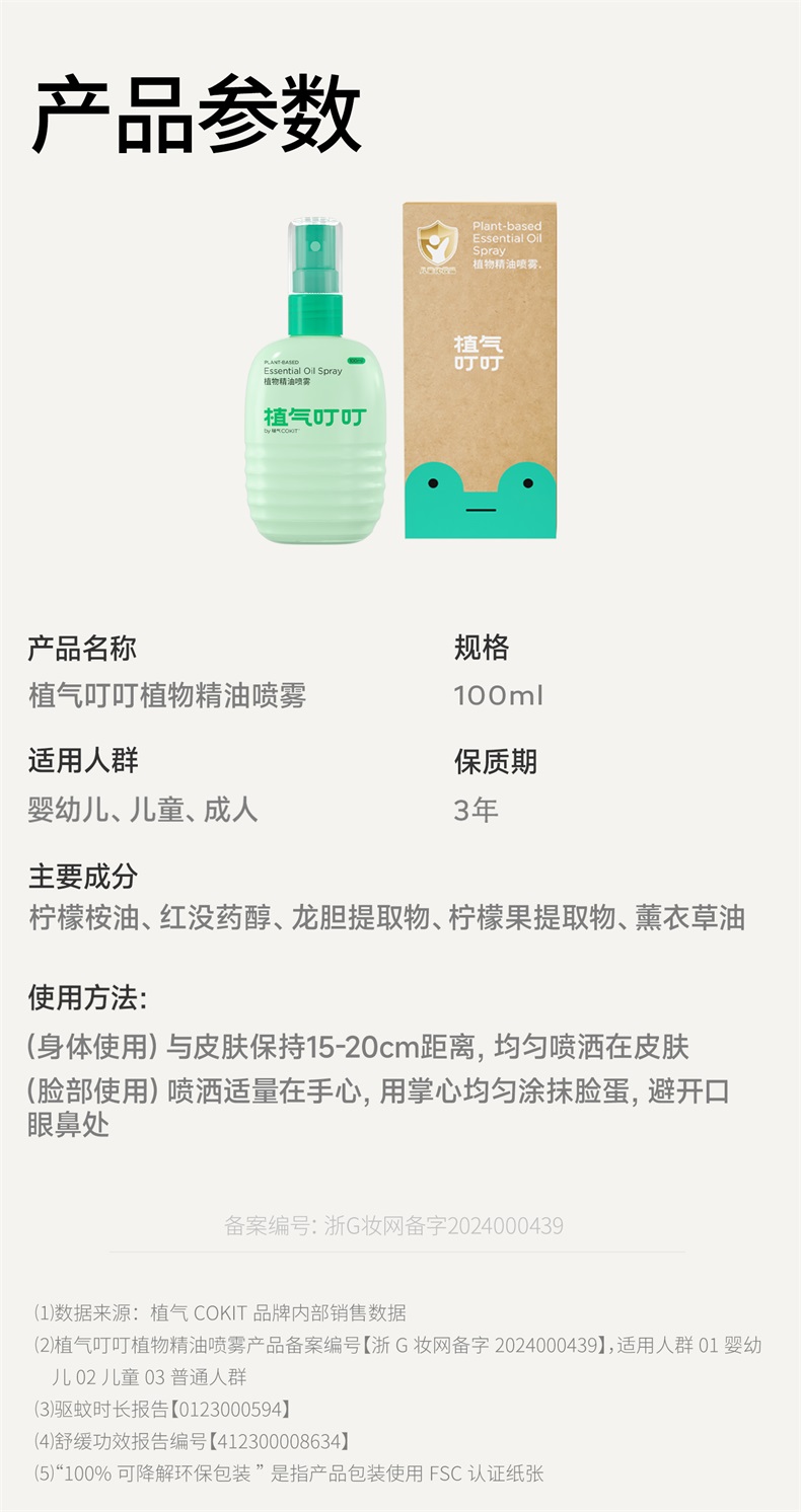 植气叮叮 S00136 100ml/瓶*2 婴儿驱蚊喷雾 绿色(单位:组)