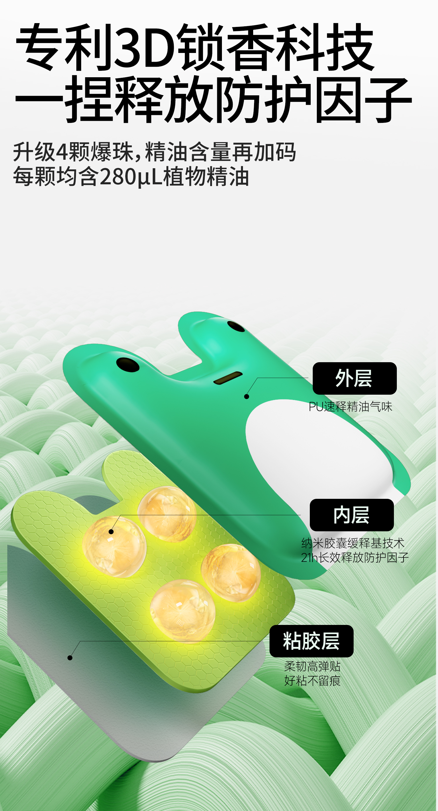 植气叮叮 S00115 8贴/盒*2 蛙蛙爆珠精油防护贴 绿色(单位:组)