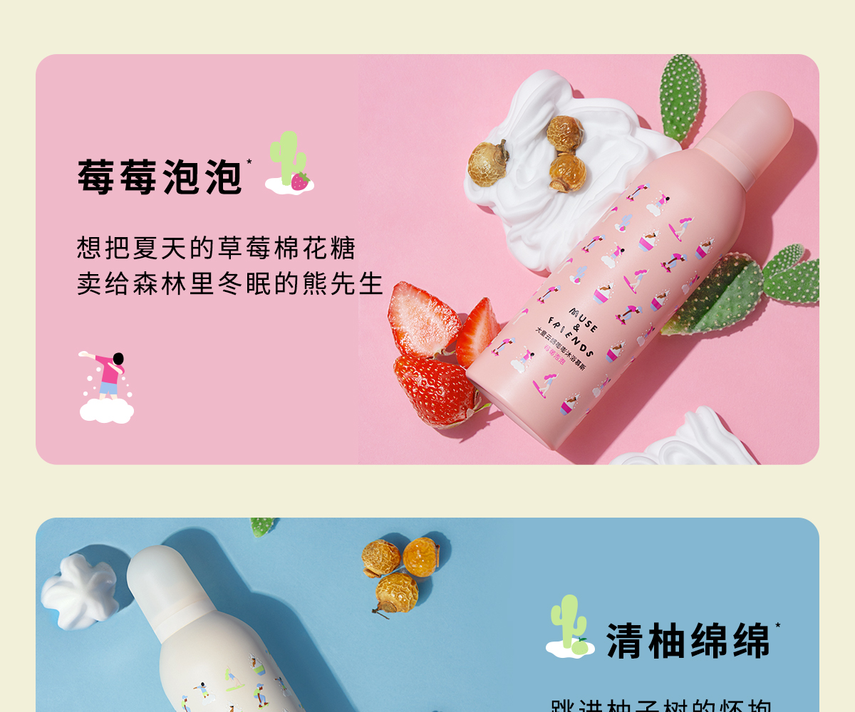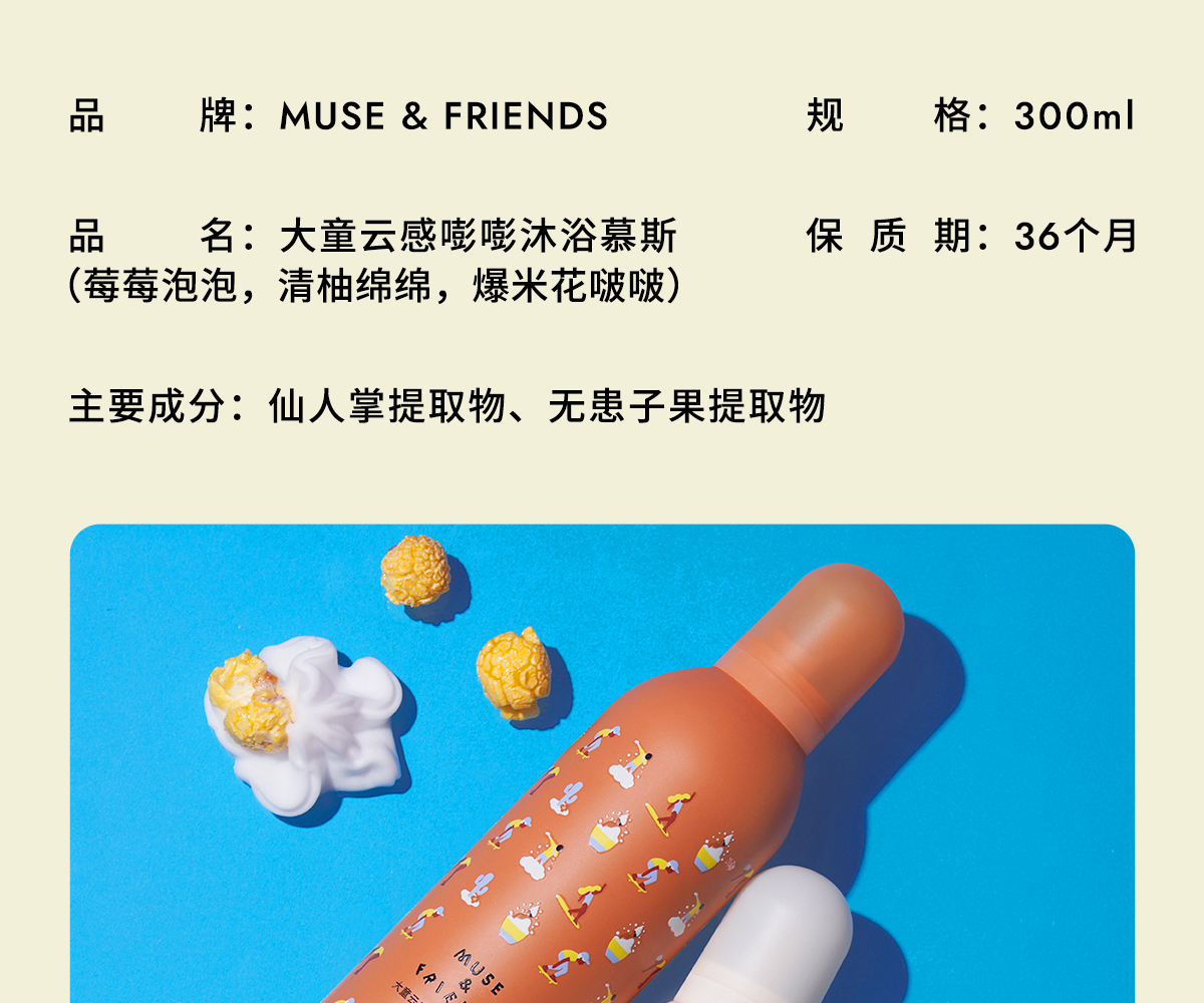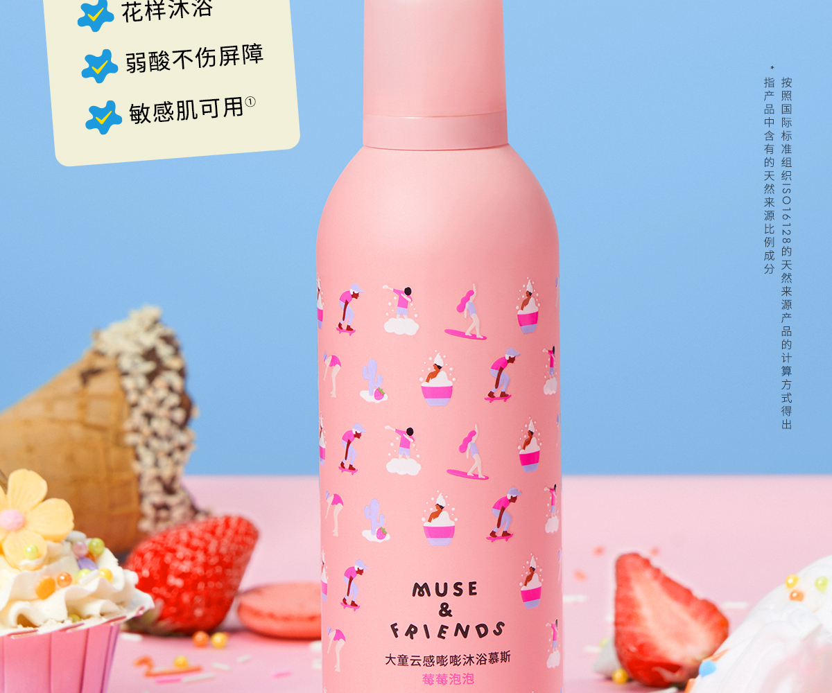 MUSE&FRIENDS 莓莓泡泡 300ml 嘭嘭沐浴慕斯 粉色(单位:瓶)