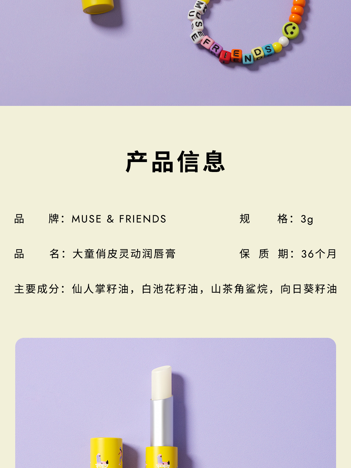 MUSE&FRIENDS 大童俏皮 3g 灵动润唇膏 黄色(单位:支)