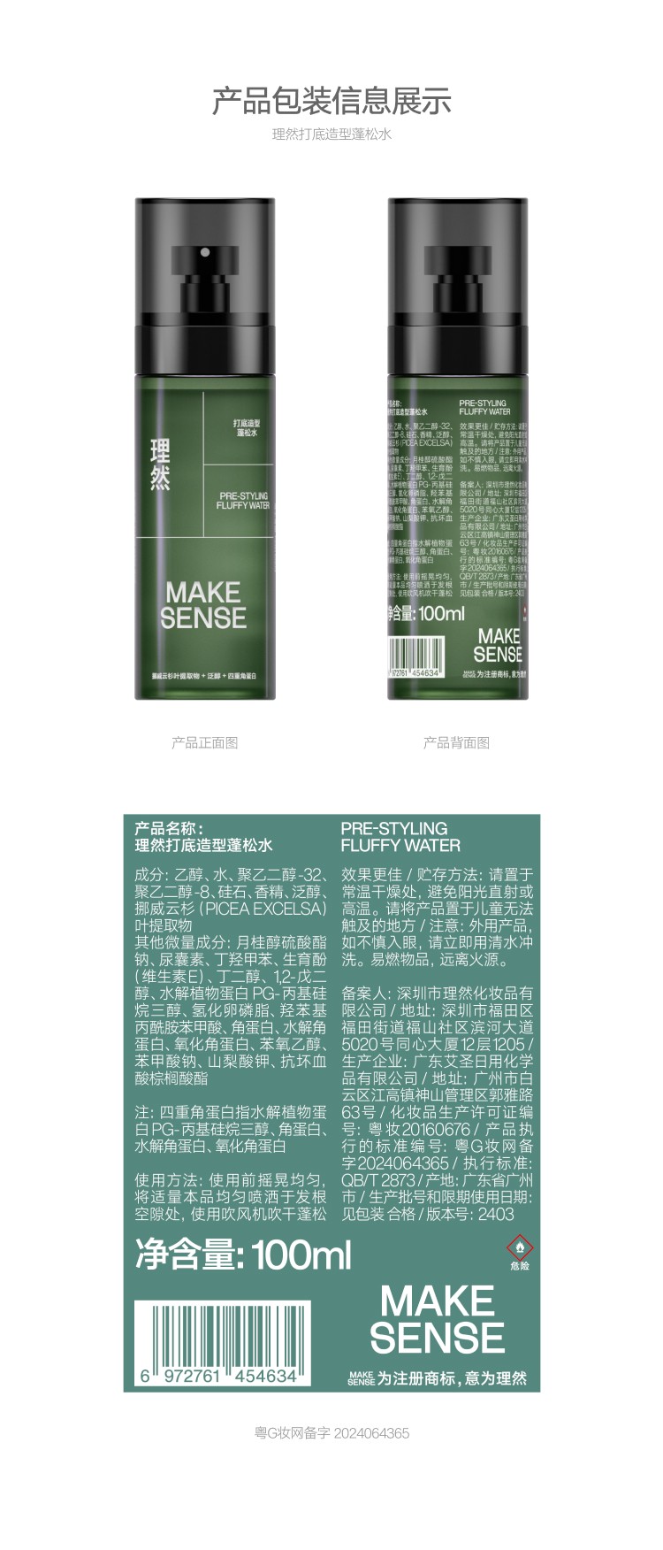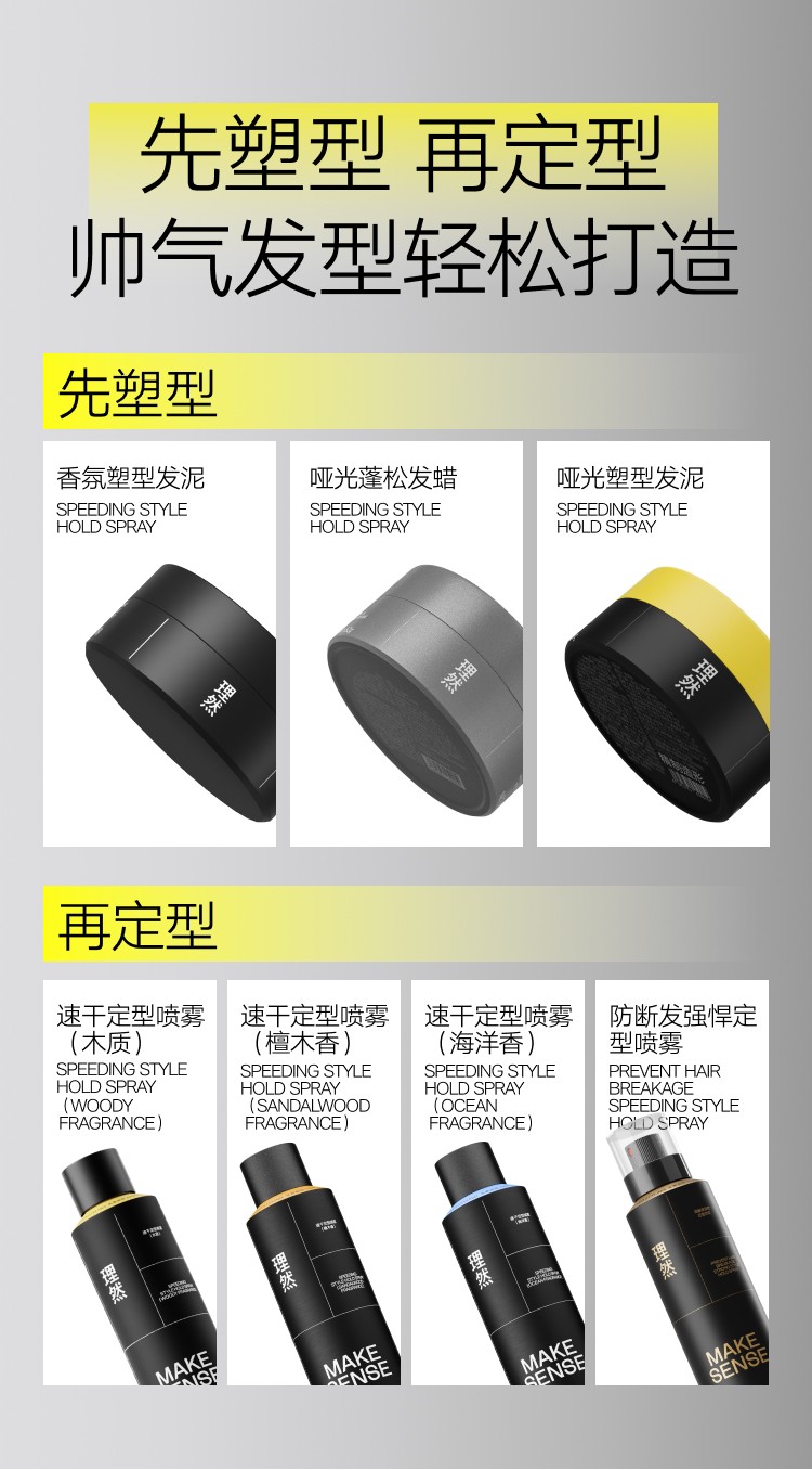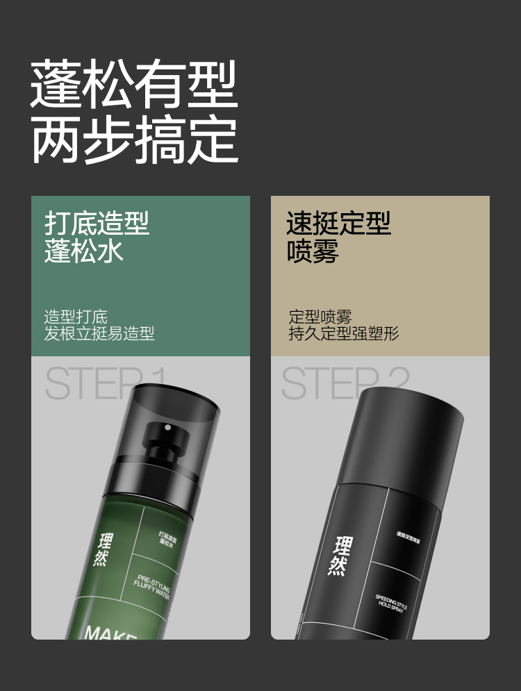 理然 轻松造型2件套 打底造型蓬松水100ml+速干定型喷雾木质香250ml 持久定型 混色(单位:套)