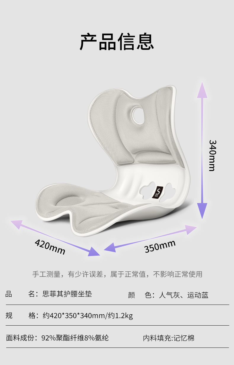思菲其 S21 1.2kg*1个 护腰坐垫靠背 高级灰(单位:个)