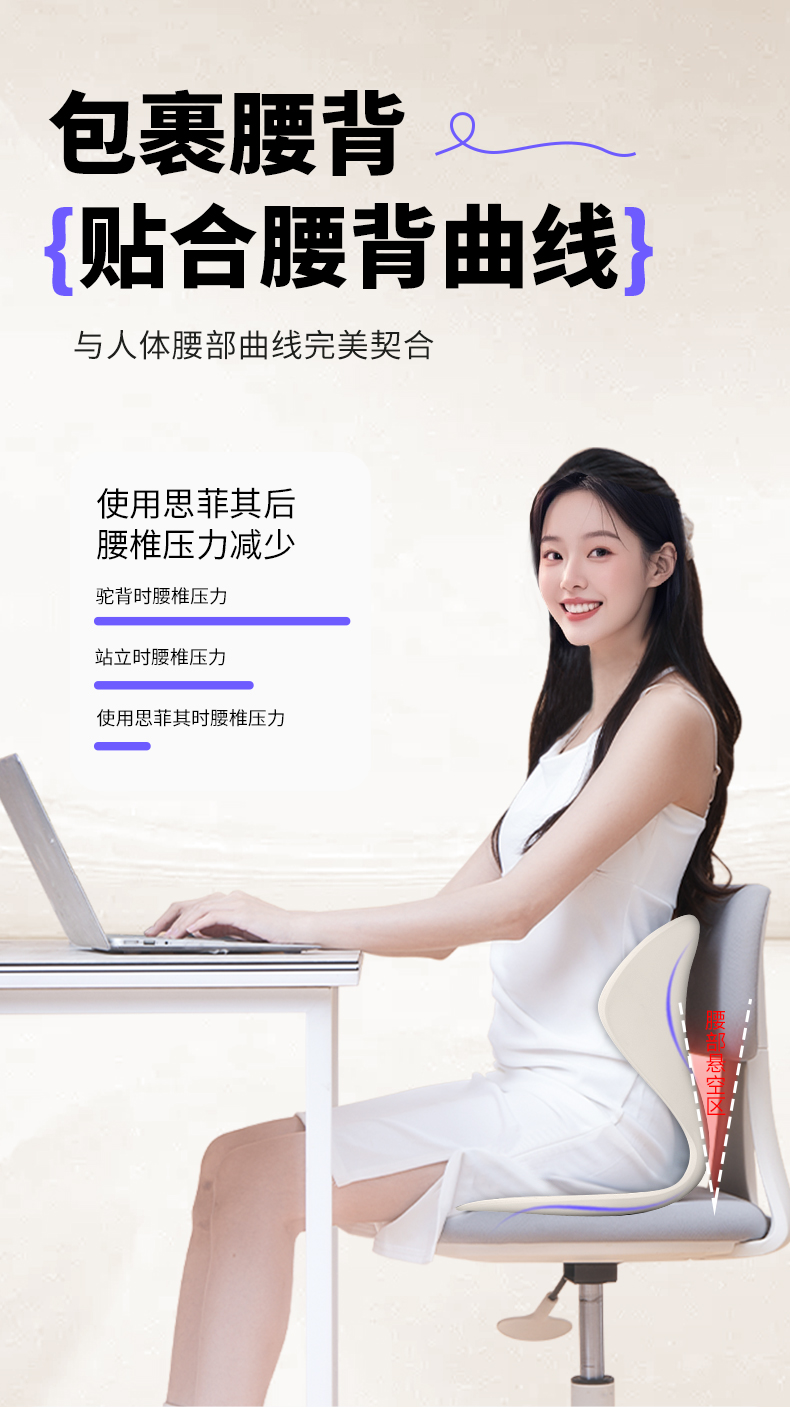 思菲其 S23 1.3kg*1个 牛角款护腰坐垫靠背 运动蓝(单位:个)