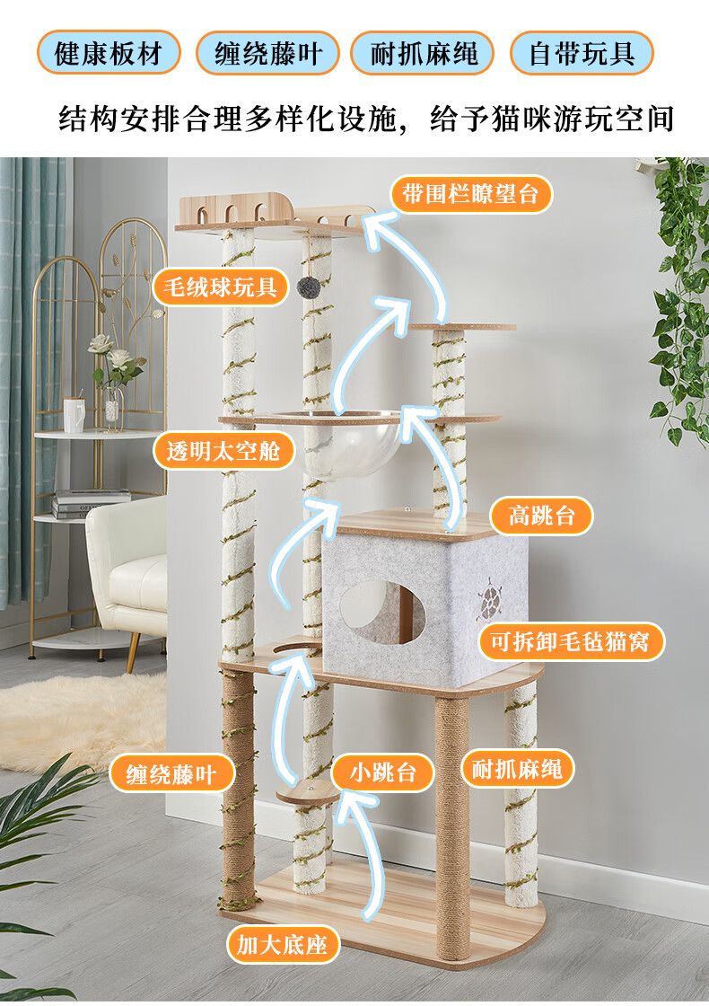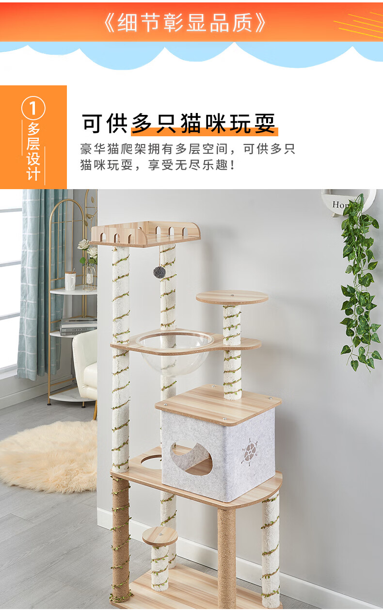灵宠物语 猫爬架 5层1.5米 耐抓稳定不倒猫架 白色(单位:个)