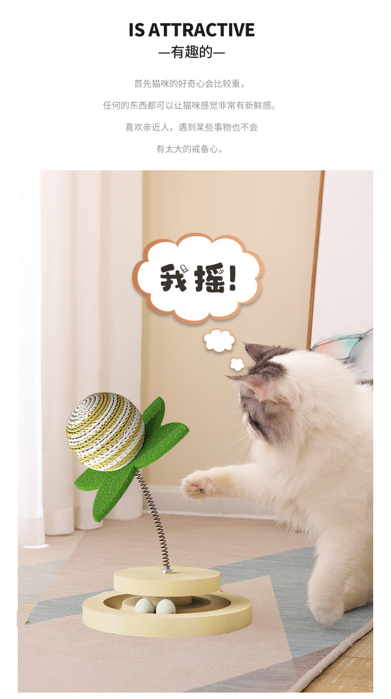 灵宠物语 弹簧剑麻球 18cm*49cm 旋转球宠物玩具 象牙色(单位:个)