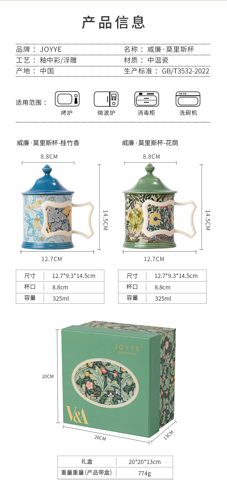 JOYYE 单品威廉·莫里斯杯 325ml 陶瓷马克杯 桂竹香(单位:套)