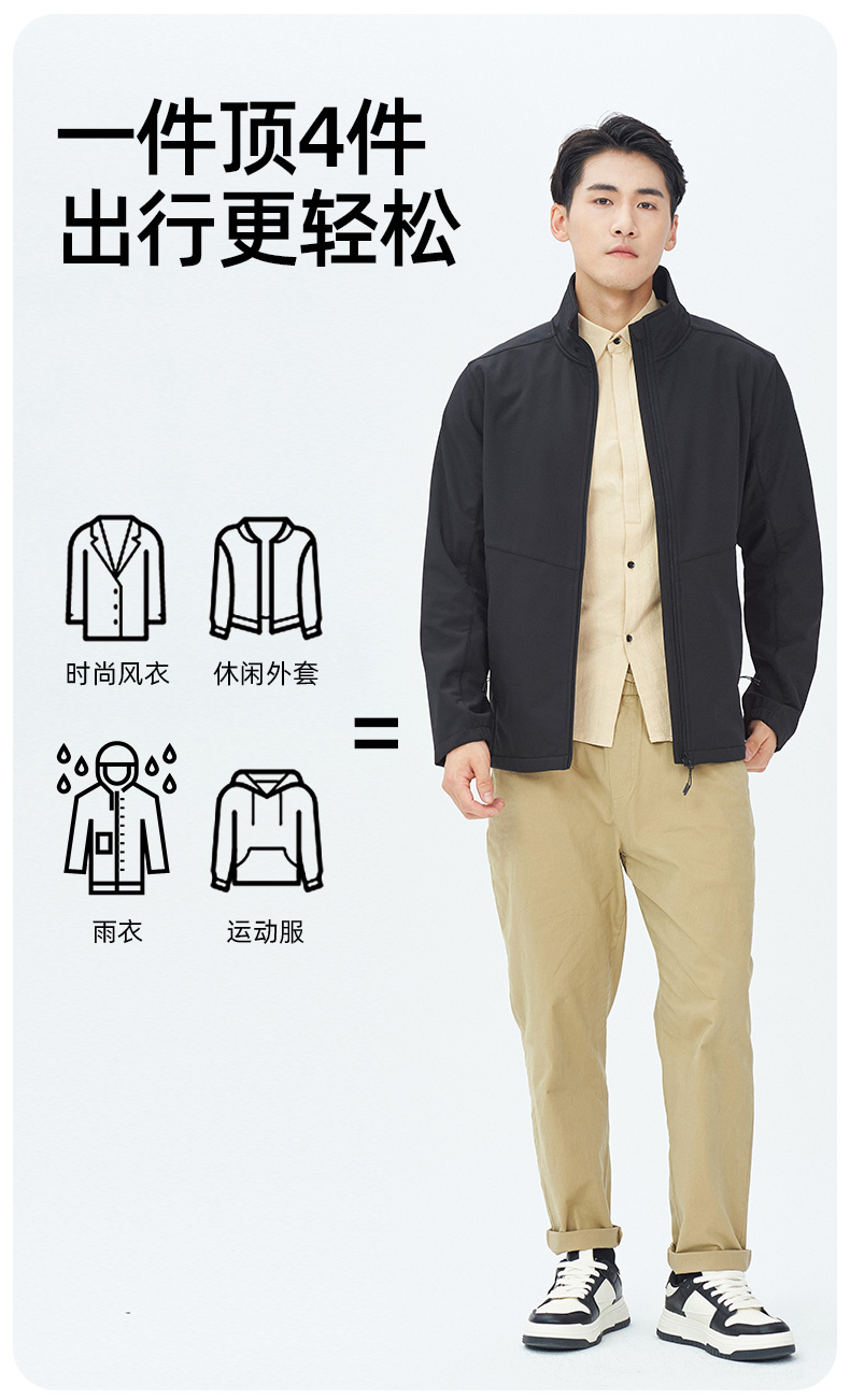 丰讯男士单层冲锋衣立领春秋户外轻便外套FXTF231005(单位:件) 藏蓝 3XL