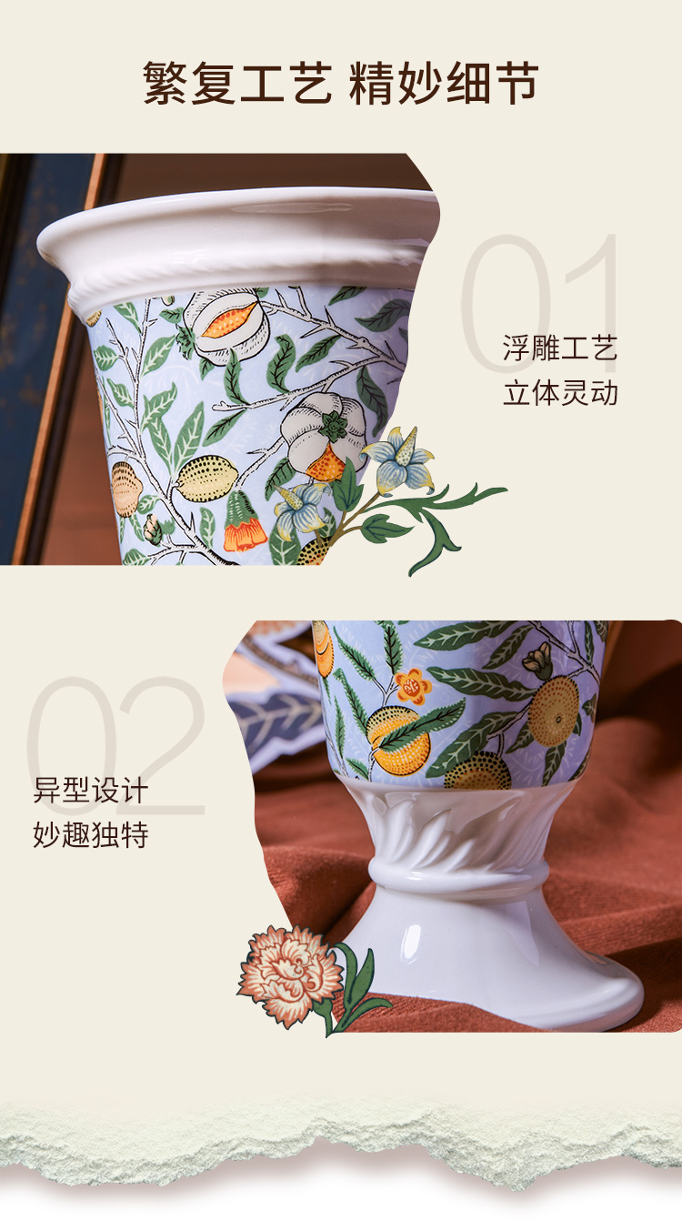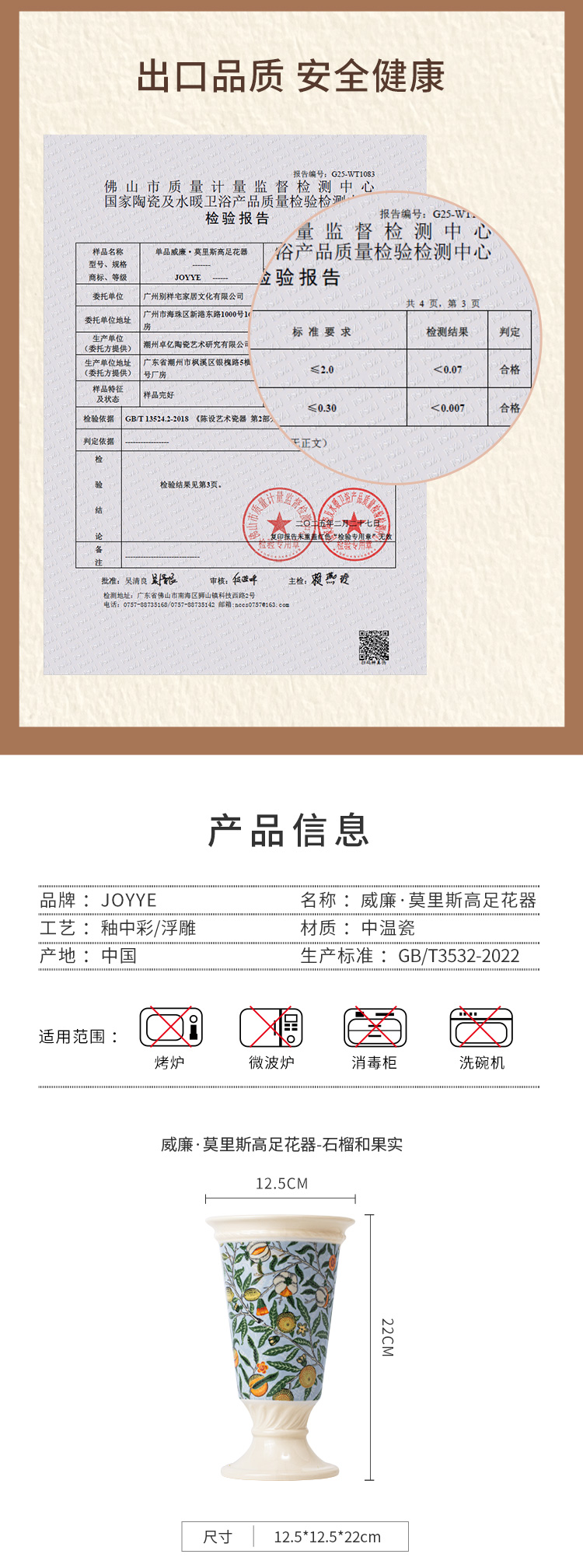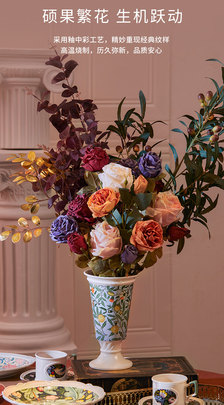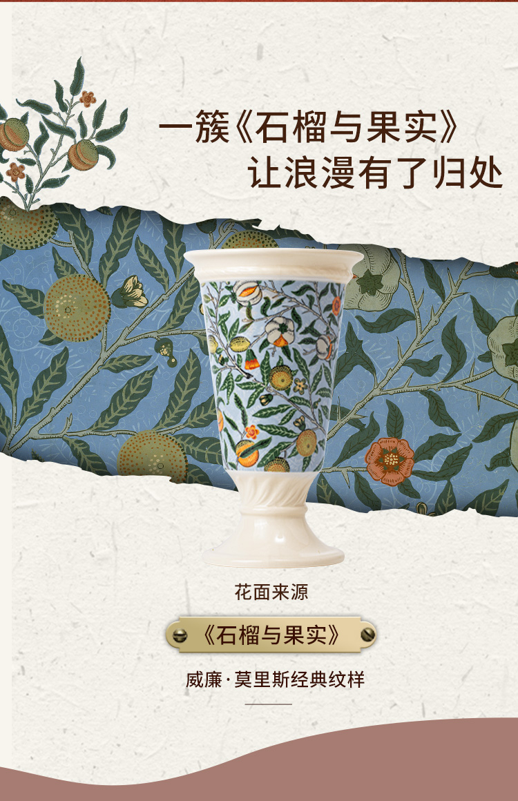 JOYYE 单品威廉·莫里斯高足花器 12.5*12.5*22cm 花瓶 石榴与果实(单位:个)