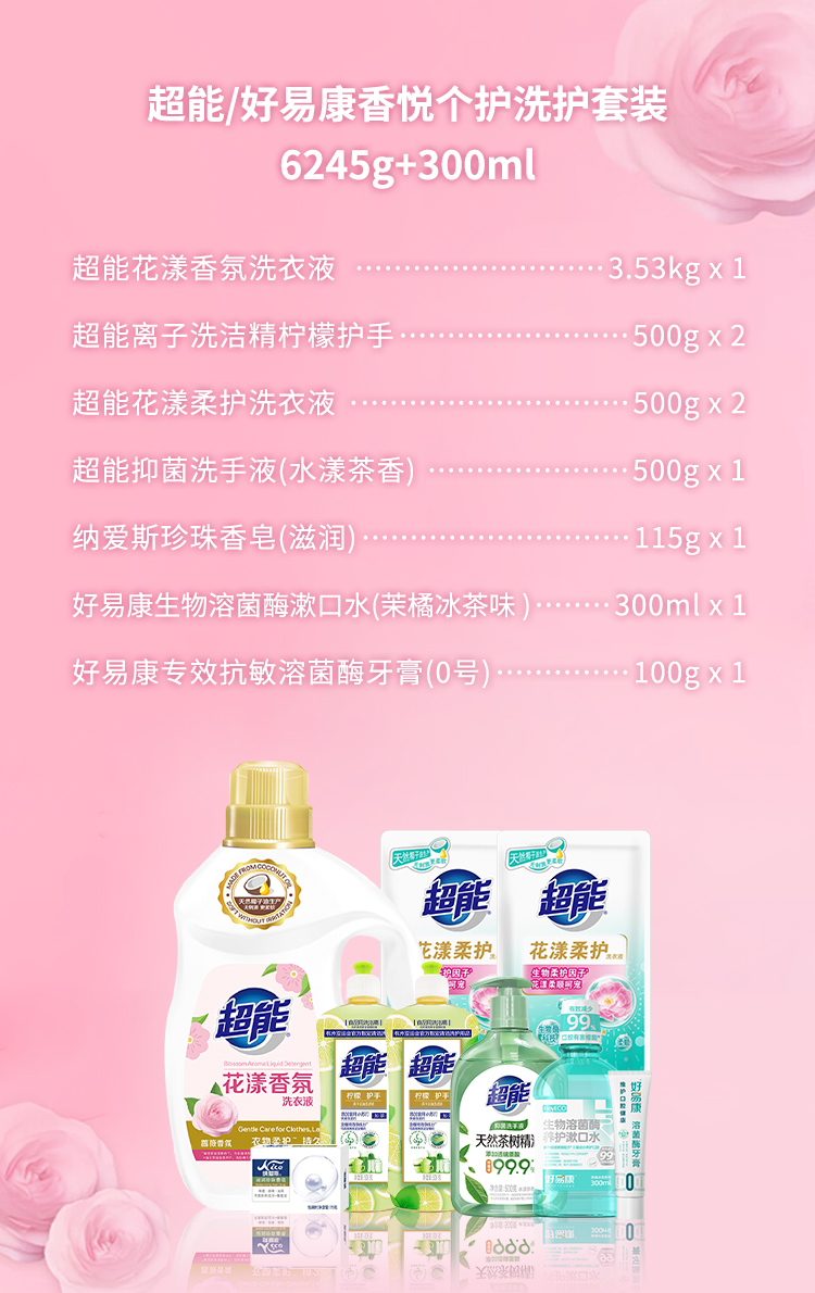 超能 好易康香悦个护洗护套装 6245g+300ml 深层净澈护理 混色(单位:套)