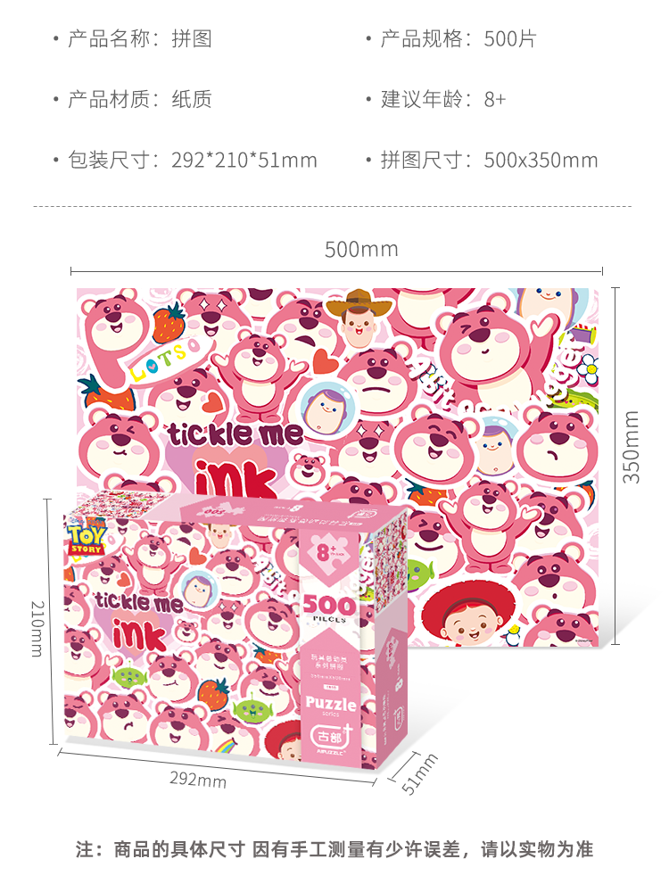 古部 11DF5001510 草莓熊500片盒装拼图 迪士尼玩具总动员 粉色(单位:盒)
