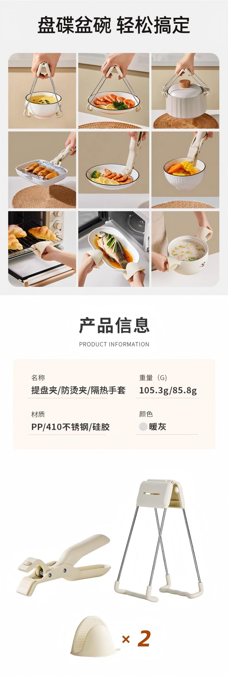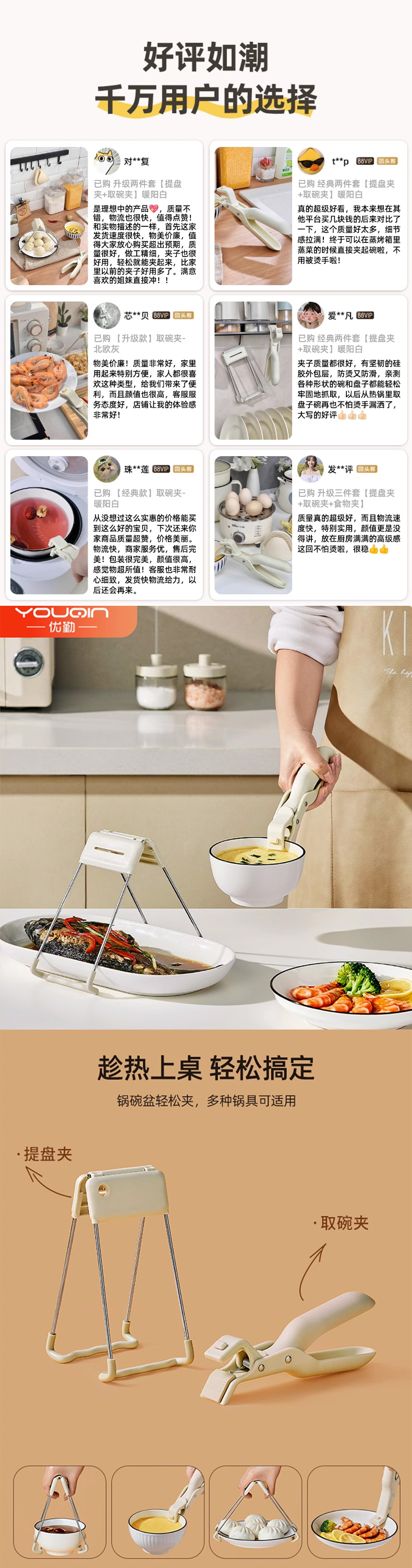 优勤(YOUQIN) JR-AAB027TPJ(GJBBK)-NH 提盘夹1个+取碗夹1个+隔热手指套套2个17.8*8.8*8 升级三件套 白色(单位:套)