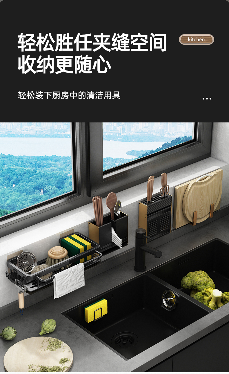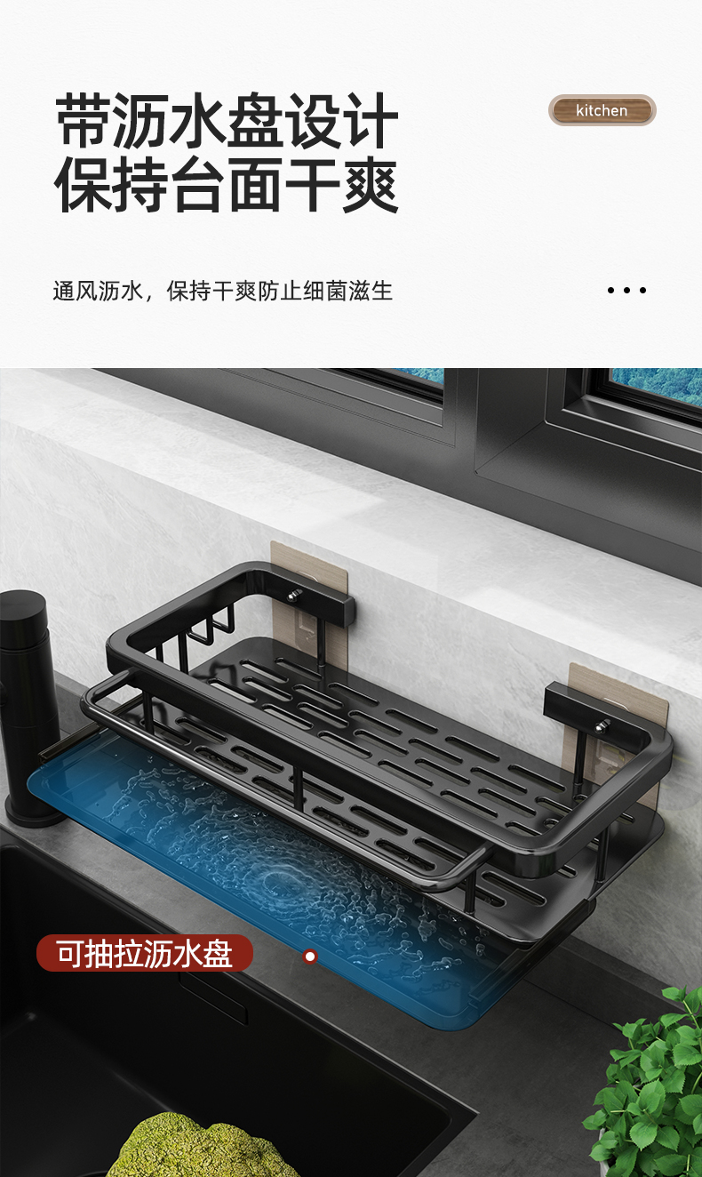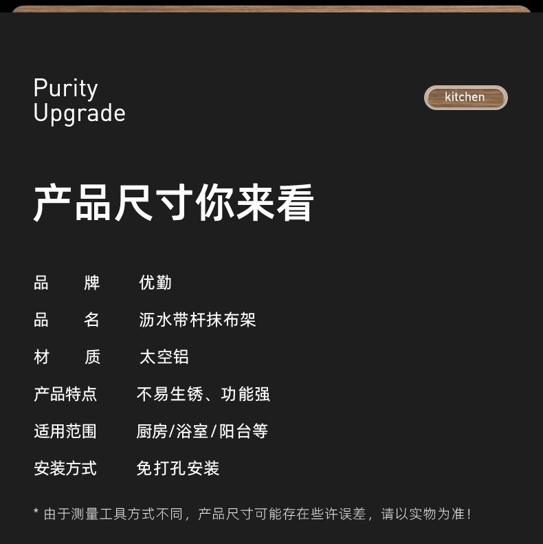 优勤(YOUQIN) Z-5739DGDGCFLDJSP-QHS# 32.3*13.3*5.7cm 沥水抹布架带接水盘 枪灰色(单位:个)