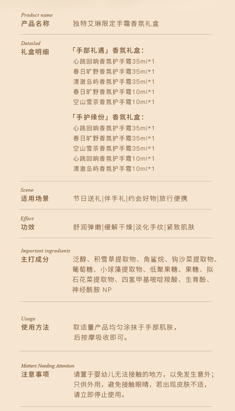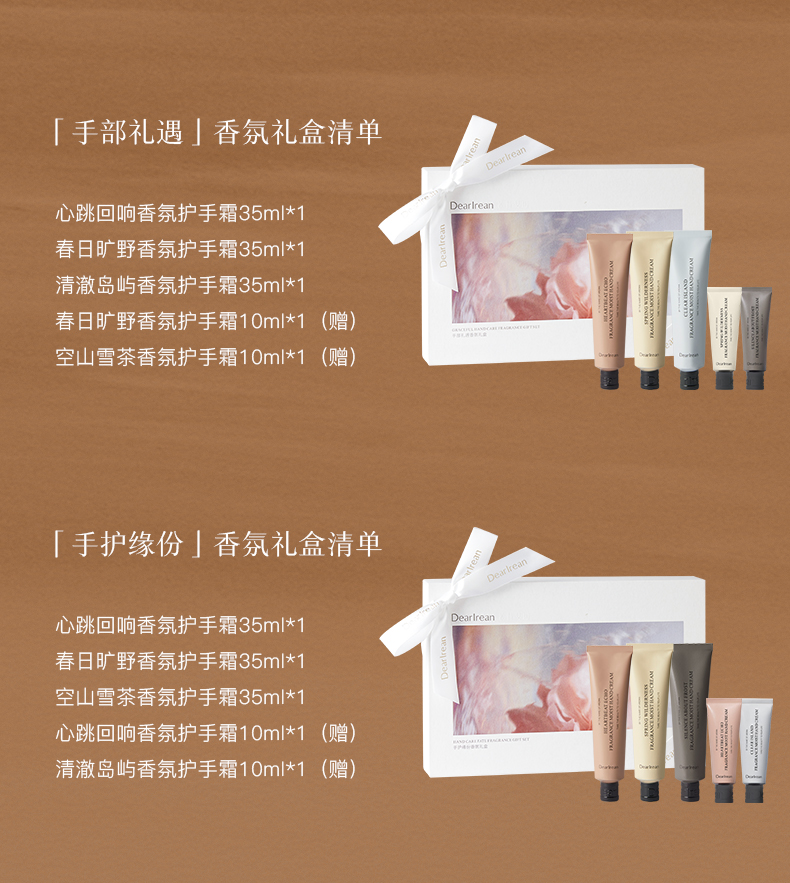 独特艾琳(Dear lrean) 限定护手霜香氛礼盒(配礼袋) 手护缘份 (含贺卡)35m1*3+10ml*2 豆沙色(单位:套)
