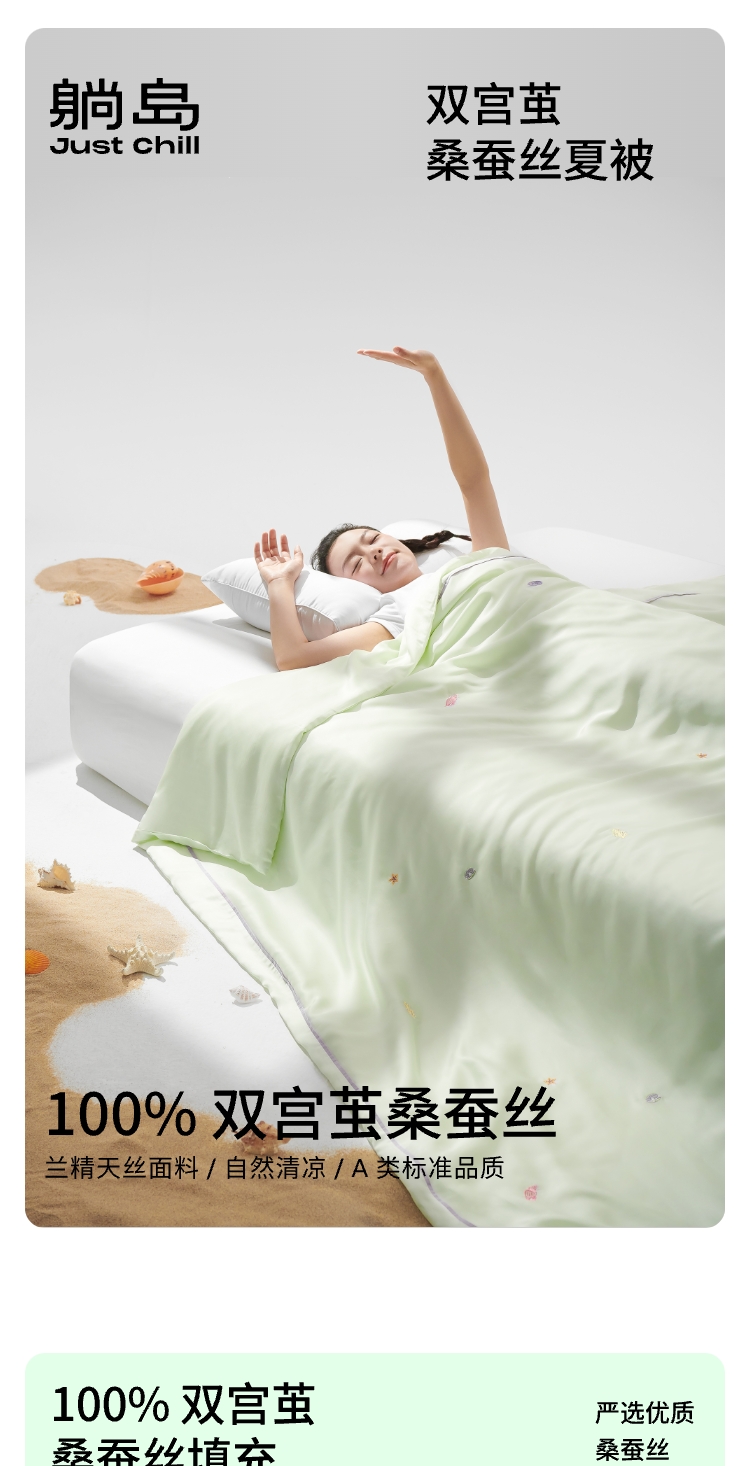 躺岛 双宫茧桑蚕丝夏被 空调被夏凉被 200X230cm 晨雾绿(单位:张)