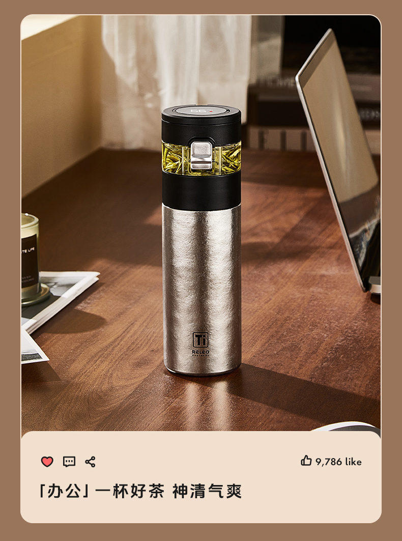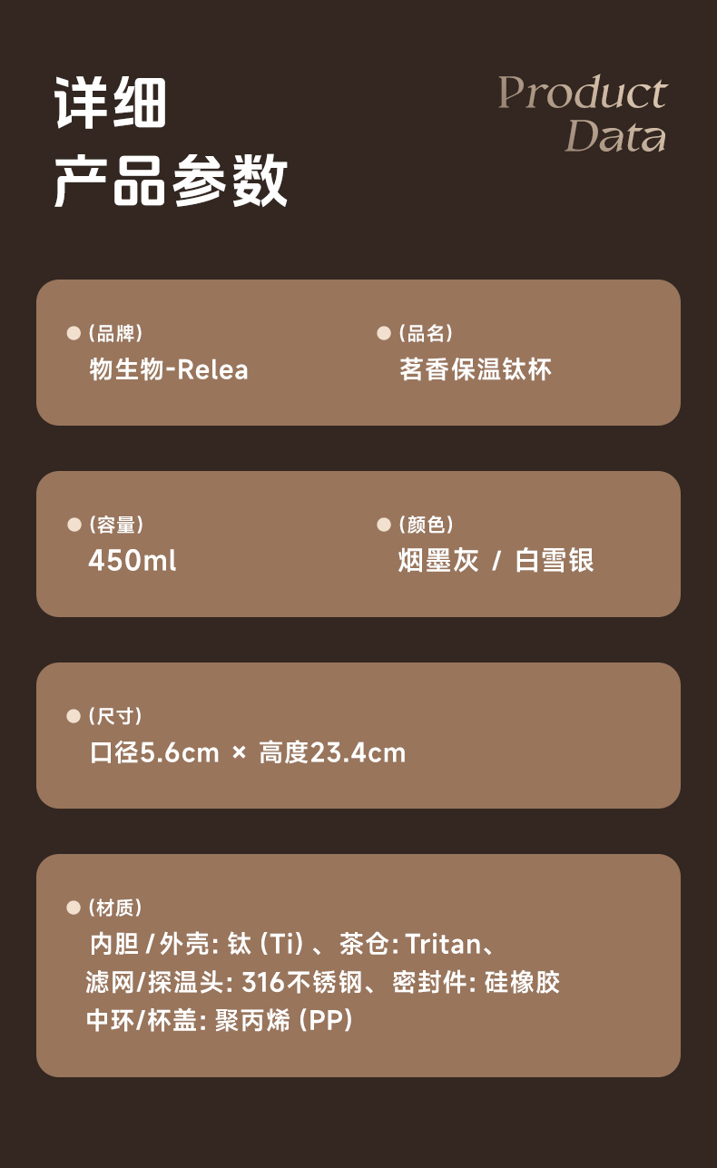 物生物(RELEA) 茗香保温钛杯 JV012479-0450-GS00 450ML 烟墨灰(单位:个)