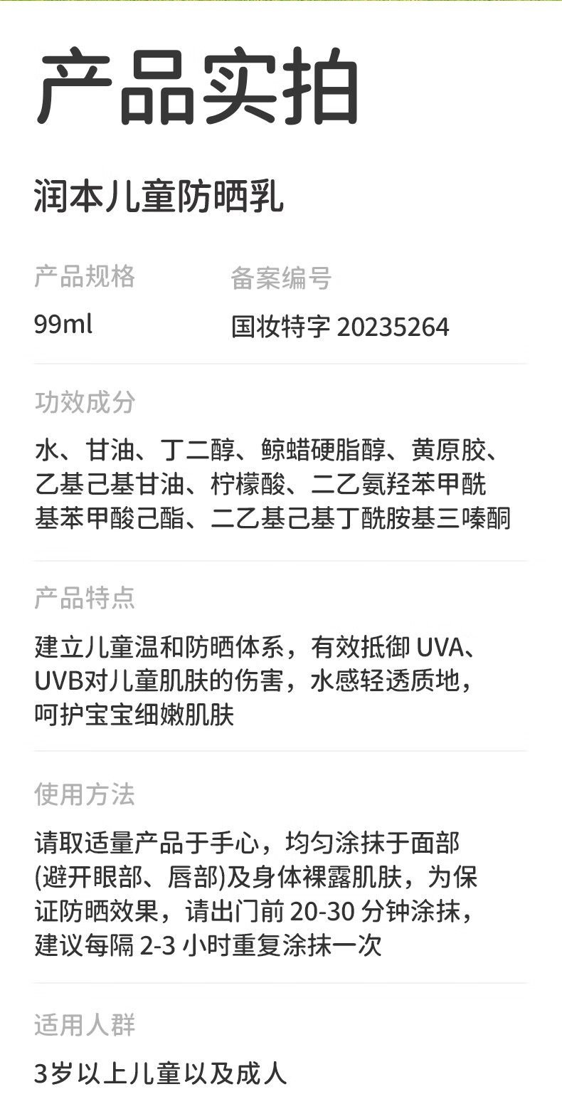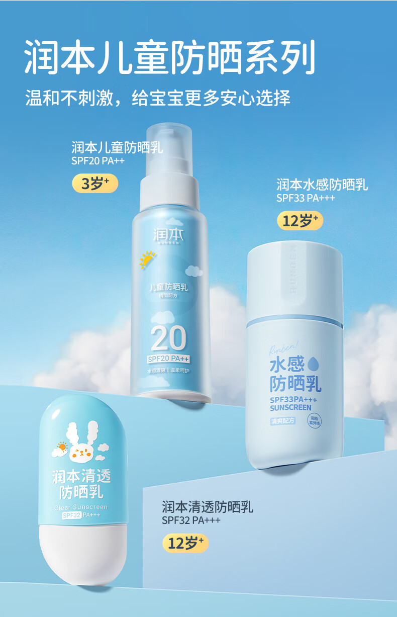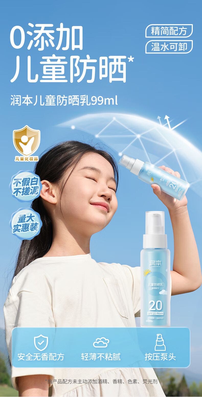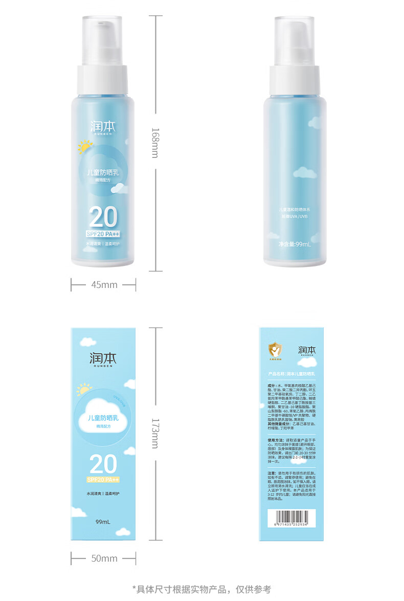 润本(RUNBEN) 儿童防晒乳 SPF20++ 99ml 水蓝色(单位:支)