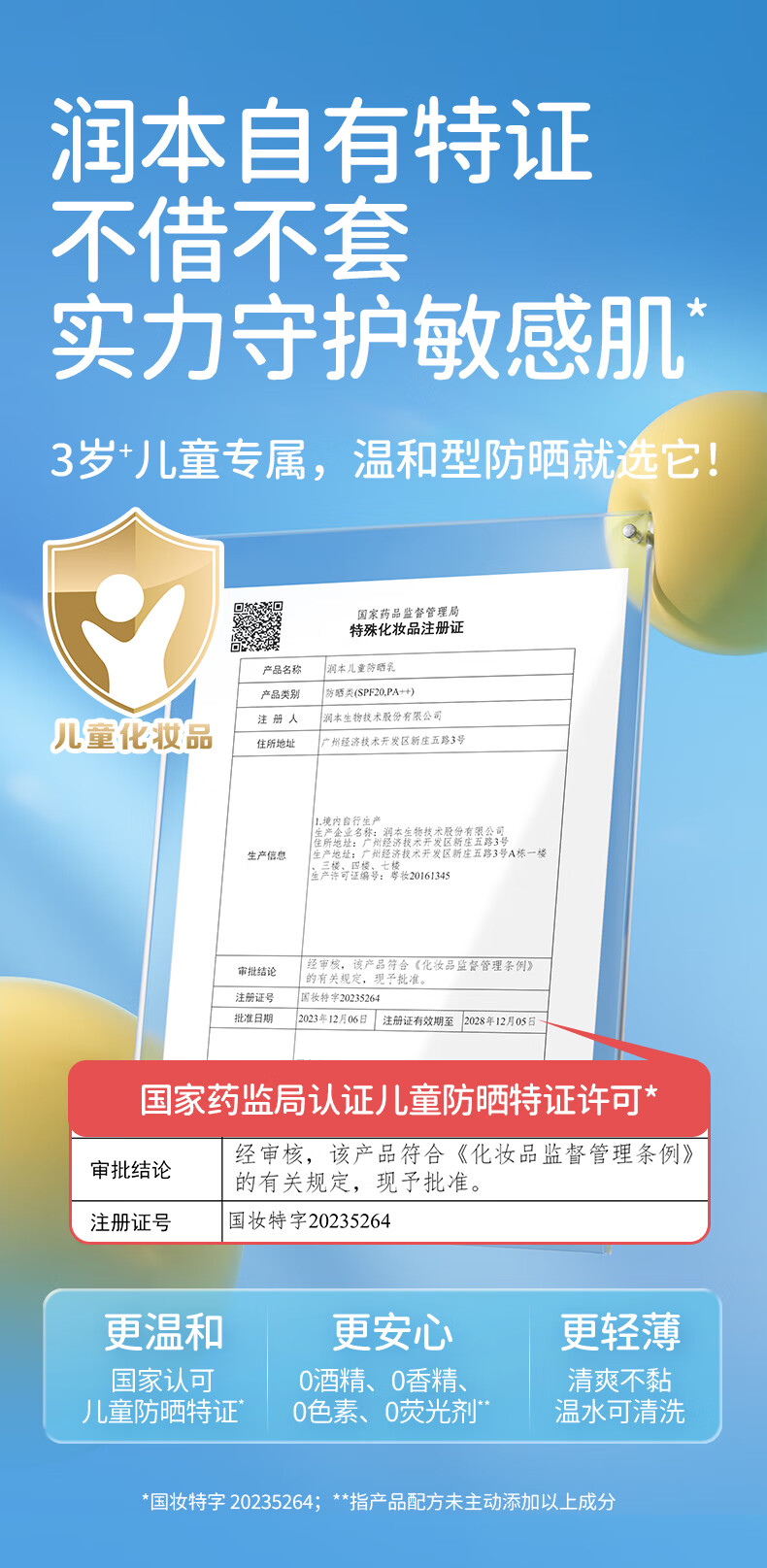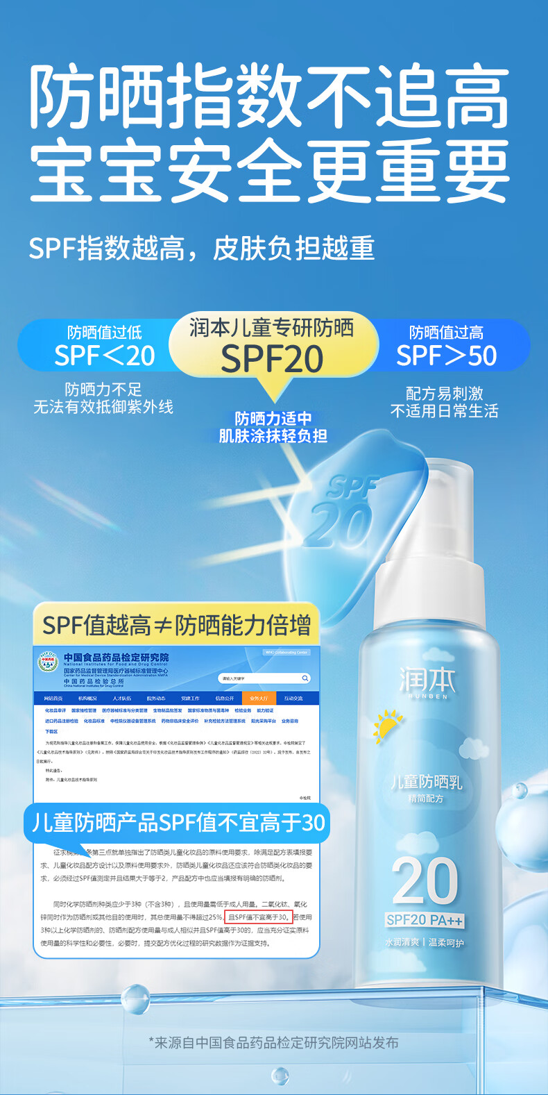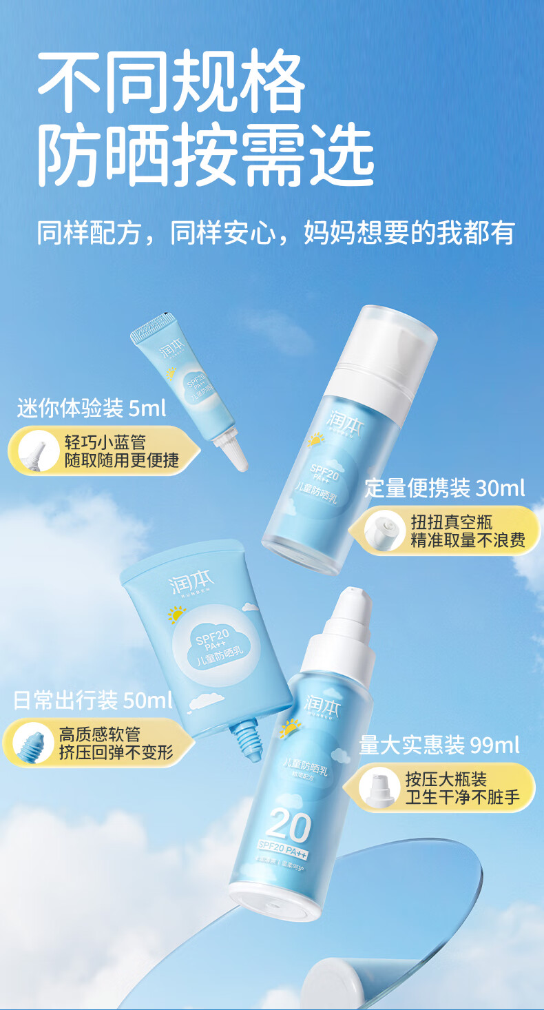 润本(RUNBEN) 儿童防晒乳 SPF20++ 99ml 水蓝色(单位:支)
