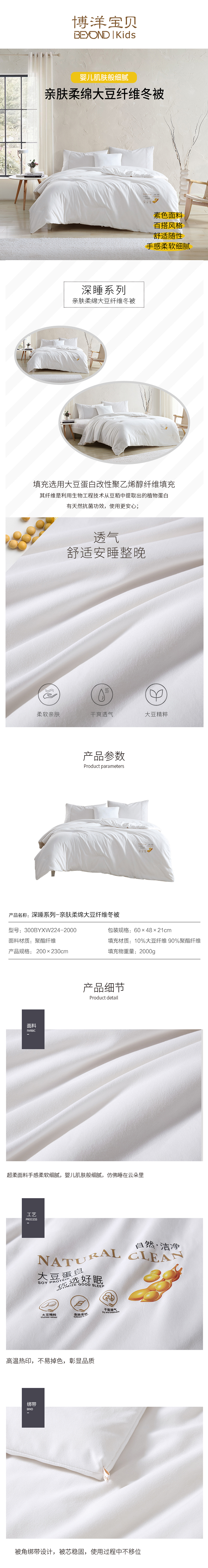 博洋宝贝(Beyond Kids) 亲肤柔绵大豆纤维冬被大豆被 BYXW224-2000 200*230cm 白色(单位:条)