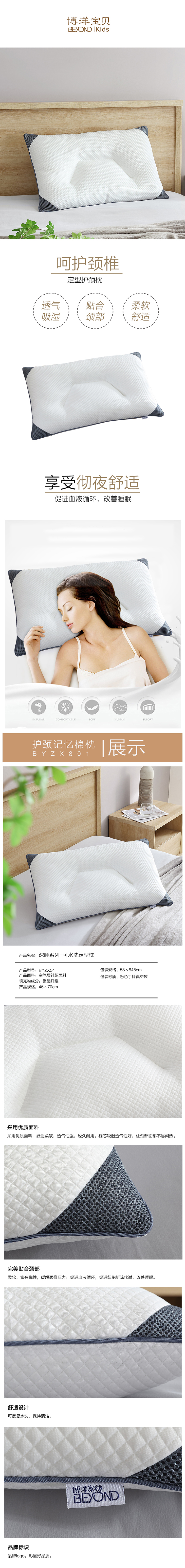 博洋宝贝(Beyond Kids) 水洗定型枕 枕芯 BYZX54 46*70cm 白色(单位:个)